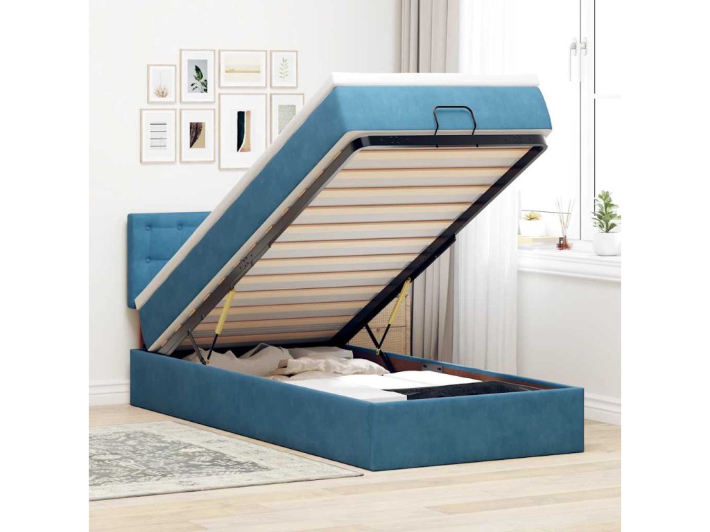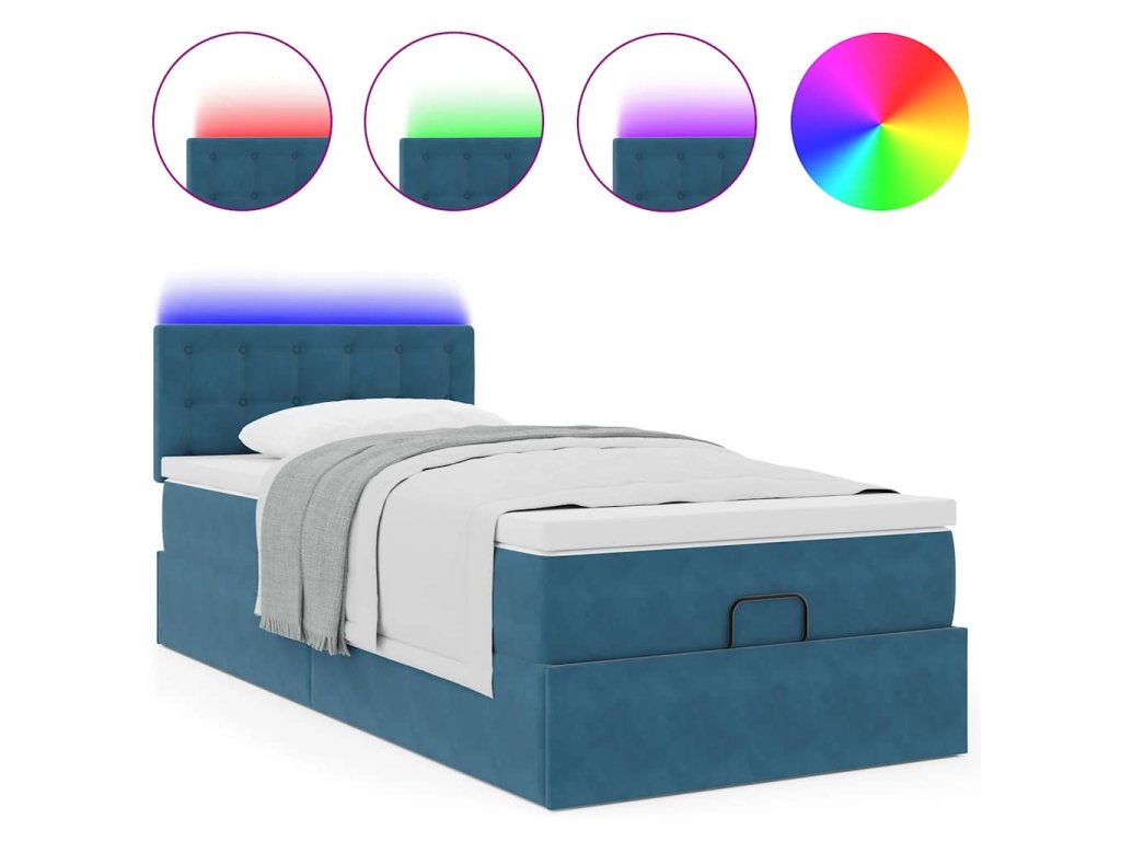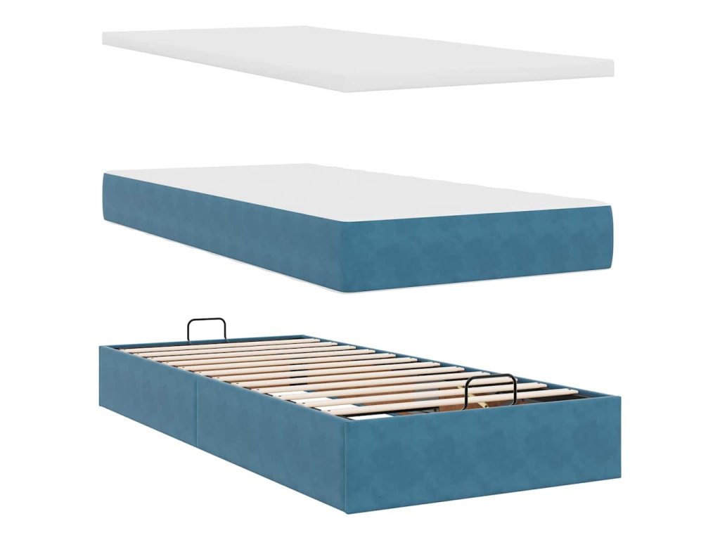 Osmanský rám postele s matrací tmavě modrá 90x190cm samet 3312738
