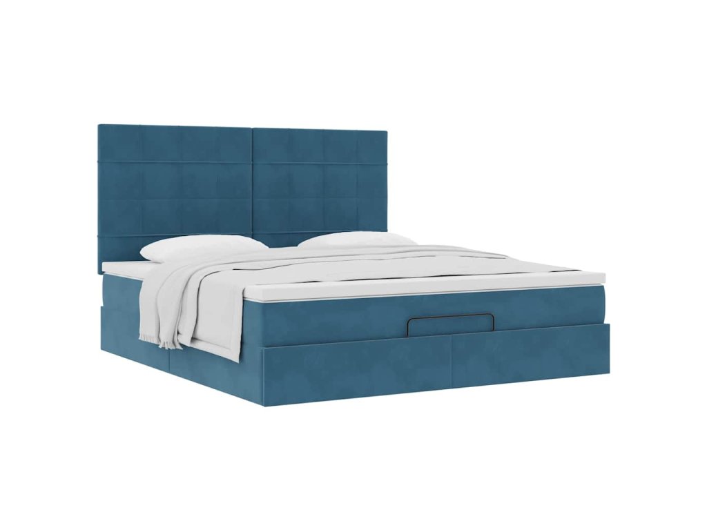 Osmanský rám postele s matrací tmavě modrý 200x200cm samet 3313497