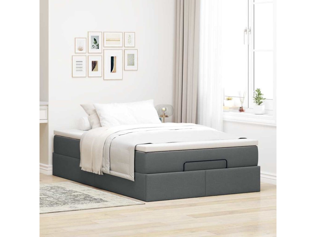 Osmanský rám postele s matrací tmavě šedá 120x190 cm textil 3311093