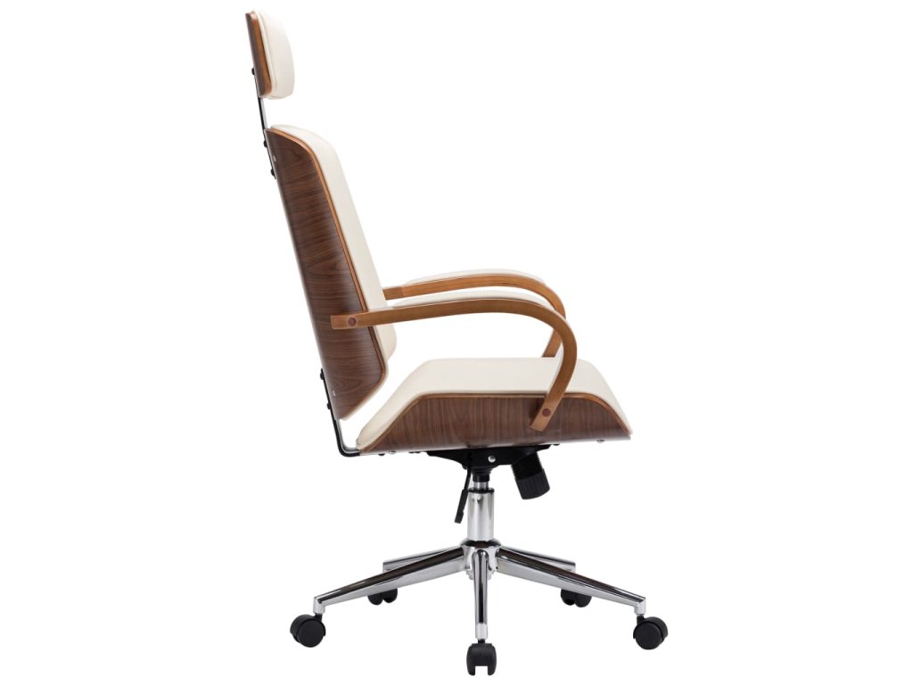 Otočná kancelářská židle opěrka hlavy krémová umělá kůže ohýbané dřevo 283136