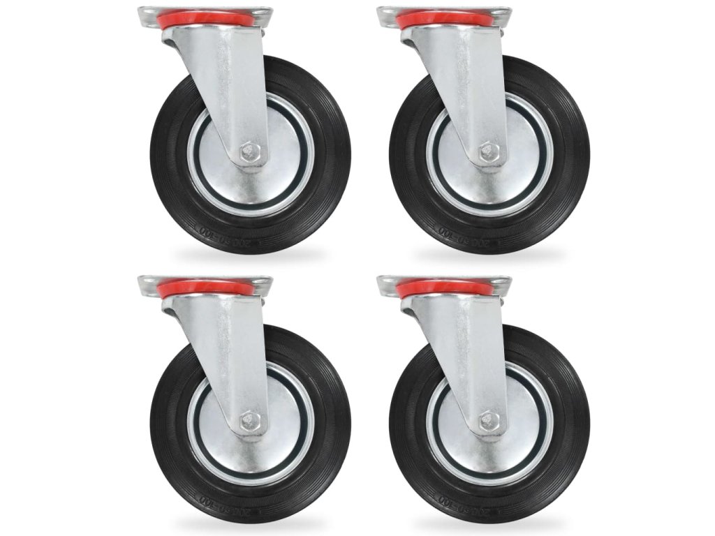 Kolečka jsou vyrobena z gumy, která je známá pro svou schopnost pohlcovat nárazy a vibrace. Ať už tedy kolečka namontujete na cokoliv, budete to moci přesouvat hladce a v tichosti. Jejich hladký povrch navíc ochrání vaši podlahu před poškrábáním. Zinkem potažený ocelový rám je odolný proti rzi, dodává kolečkům na odolnosti a prodlužuje jejich životnost. Každé kolečko má maximální nosnost až 180 kg.
