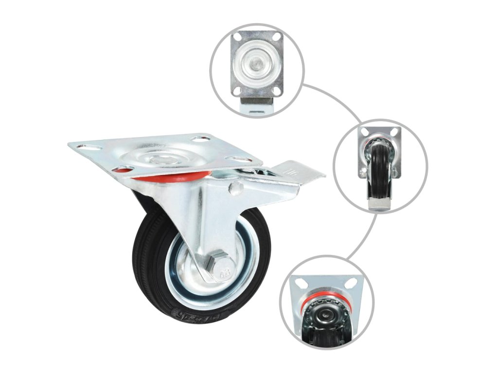 Kolečka jsou vyrobena z gumy, která je známá pro svou schopnost pohlcovat nárazy a vibrace. Ať už tedy kolečka namontujete na cokoliv, budete to moci přesouvat hladce a v tichosti. Jejich hladký povrch navíc ochrání vaši podlahu před poškrábáním. Zinkem potažený ocelový rám je odolný proti rzi, a tudíž kolečkům dodává na odolnosti a prodlužuje jejich životnost. Tato otočná kolečka jsou vybavena dvojitou brzdou pro flexibilnější ovládání. Každé kolečko má maximální nosnost až 50 kg.