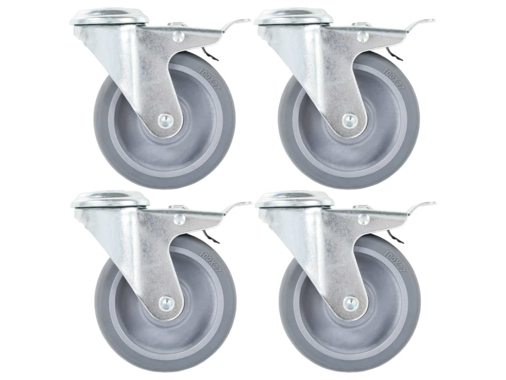 Otočná kolečka s otvorem pro šroub a dvojitou brzdou 4 ks 100 mm 143427