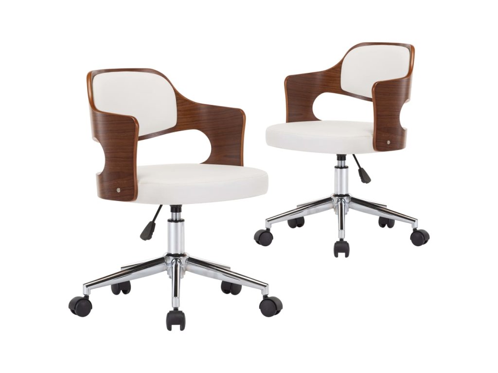 Otočné jídelní židle 2 ks bílé ohýbané dřevo a umělá kůže 3054929