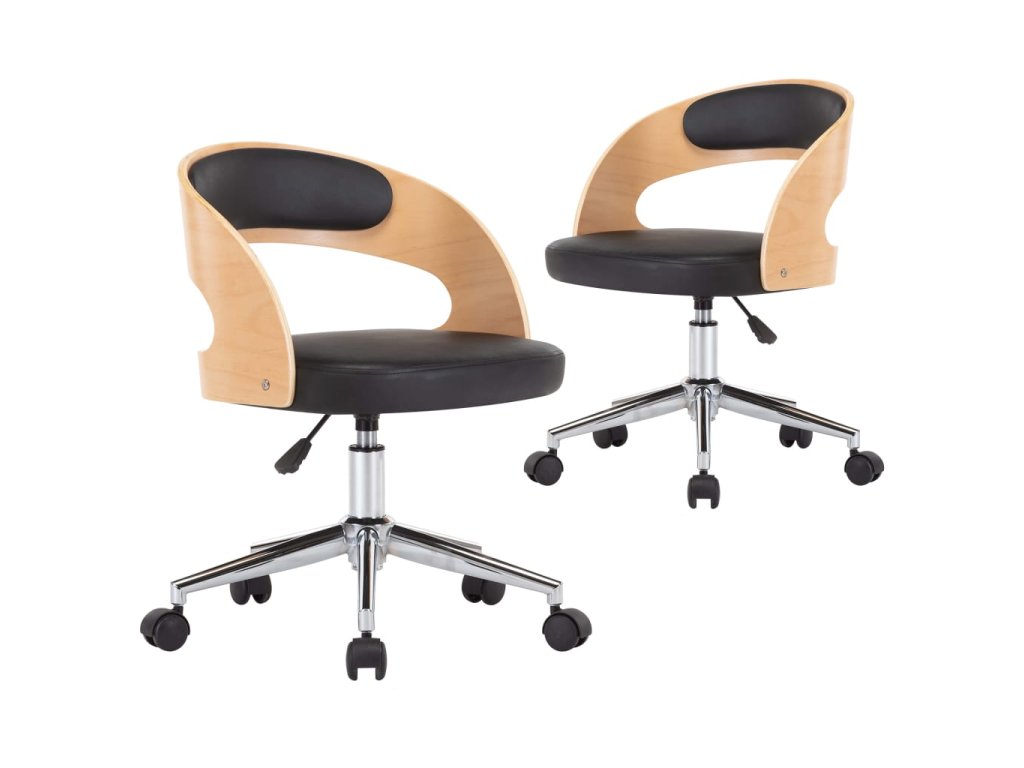 Otočné jídelní židle 2 ks černé ohýbané dřevo a umělá kůže 3054917
