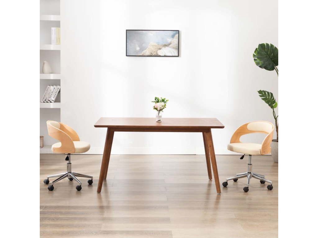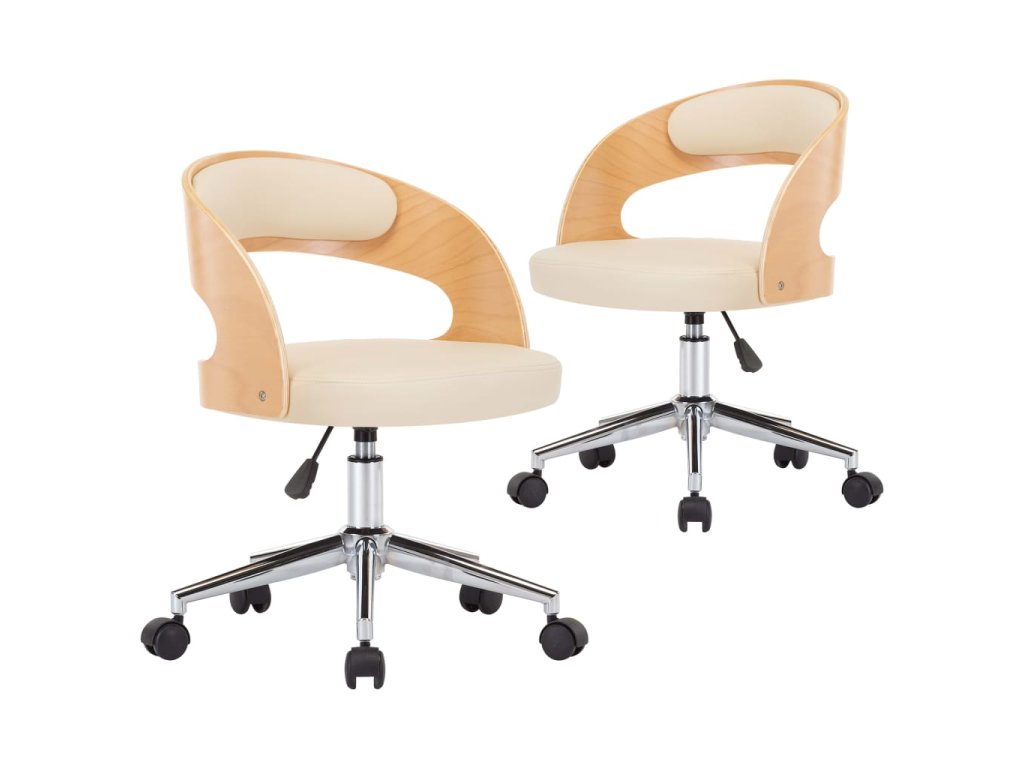 Otočné jídelní židle 2 ks krémové ohýbané dřevo a umělá kůže 3054914