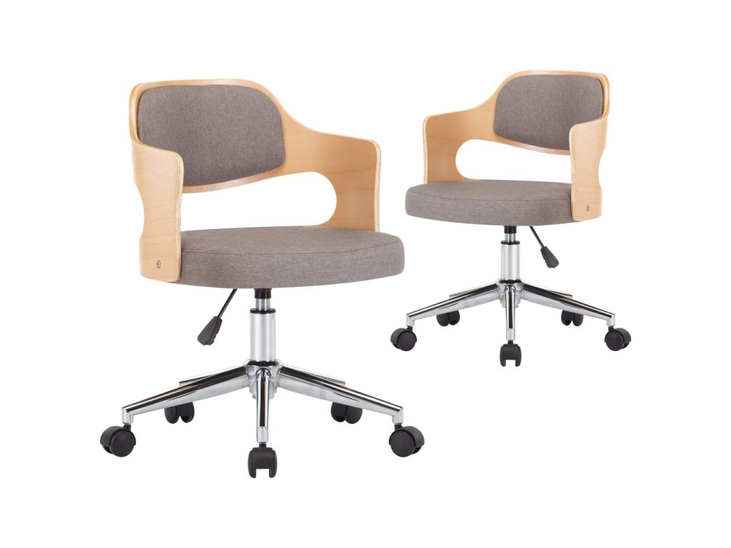 Sedák i opěradlo jsou čalouněné měkkou látkou, aby se vám na nich dobře sedělo. Dřevěný rám zvyšuje stabilitu nábytku. Sedák s opěradlem poskytují vašim zádům skvělou oporu a snižují tlak na páteř. 5 pojezdových koleček zaručuje nenáročné přesouvání židle, zatímco mechanismus s plynovým pístem zase umožňuje upravit její výšku. Tyto otočné židle navíc stylově oživí každou domácnost i kancelář.