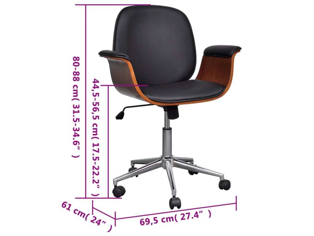 Křeslo, čalouněné vysoce kvalitní umělou kůží, je dobře polstrované pro vaše optimální pohodlí. Rám z ohýbaného dřeva dává křeslo krásu a styl. Úhel opěradla si můžete nastavit pro nejlepší podporu zad a minimální tlak na páteř. 5 pojezdových koleček v podvozku křesla umožňuje snadné přejíždění.