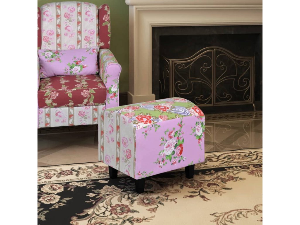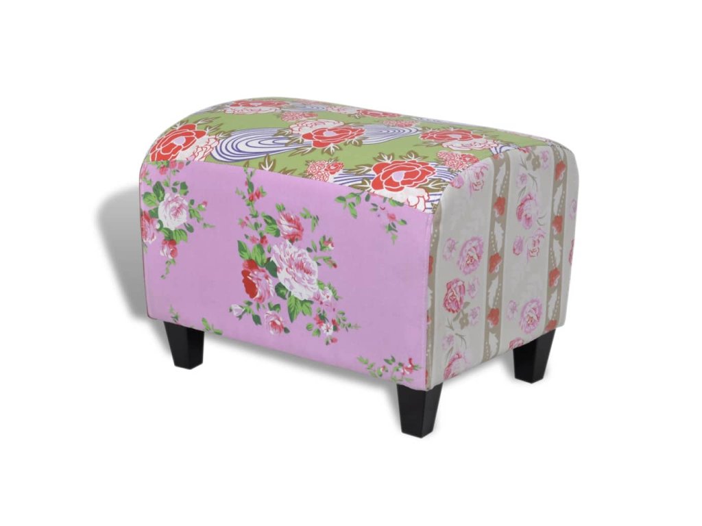 Tato kvalitní podnožka zhotovená ve stylu patchwork je díky svému florálnímu motivu krásným a elegantním kusem nábytku.