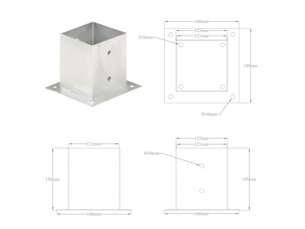 Nyní můžete své čtvercové sloupky upevnit k podkladu s našimi masivními patkami na sloupky. Tyto sloupkové kotvy jsou určené pro čtvercové trubky o průměru 121 mm.