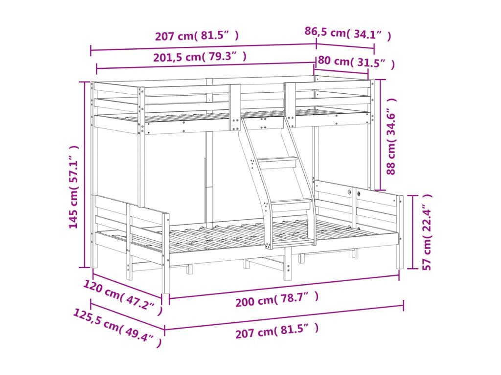 Patrová postel 80 x 200/120 x 200 cm bílá masivní borové dřevo 3207162