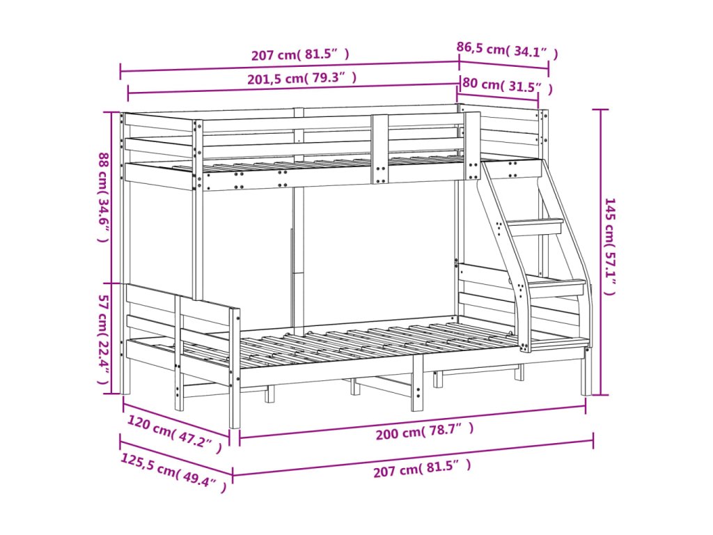 Patrová postel 80 x 200/120 x 200 cm bílá masivní borové dřevo 3207178