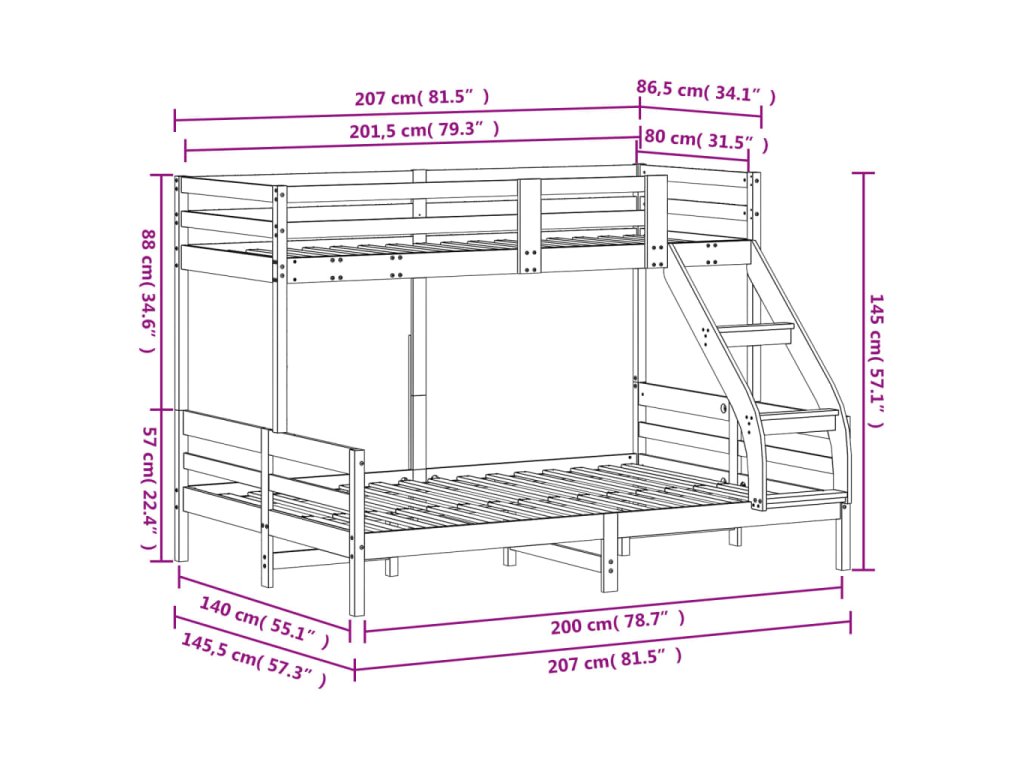 Patrová postel 80 x 200/140 x 200 cm masivní borové dřevo 3207181