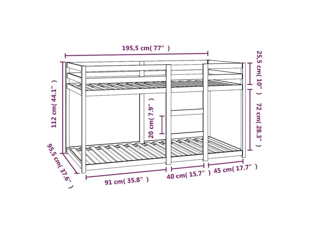 Patrová postel bez matrace 90 x 190 cm masivní borové dřevo 3206507