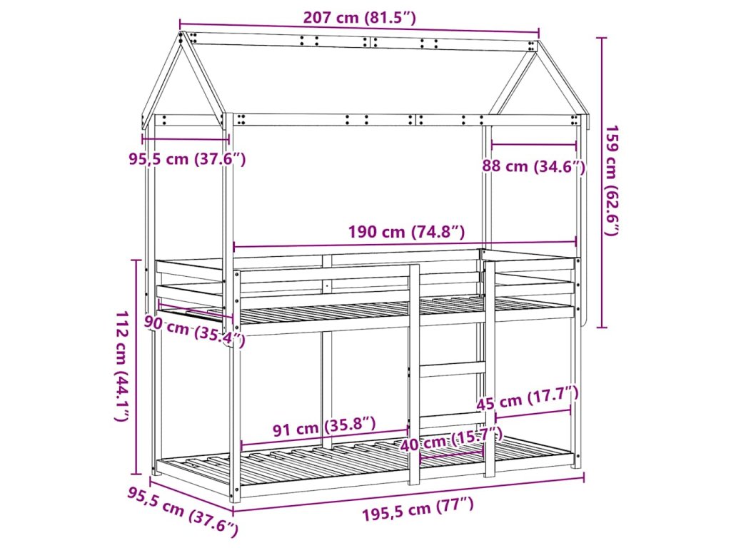 Patrová postel bez matrace 90 x 190 cm masivní borové dřevo 3282124