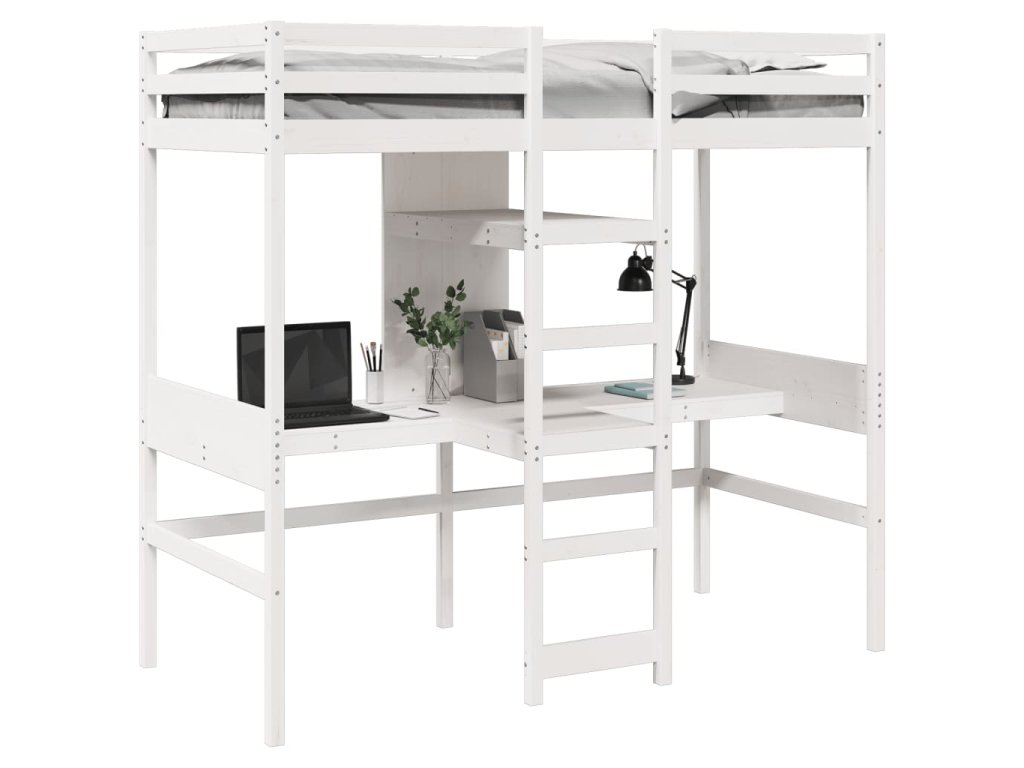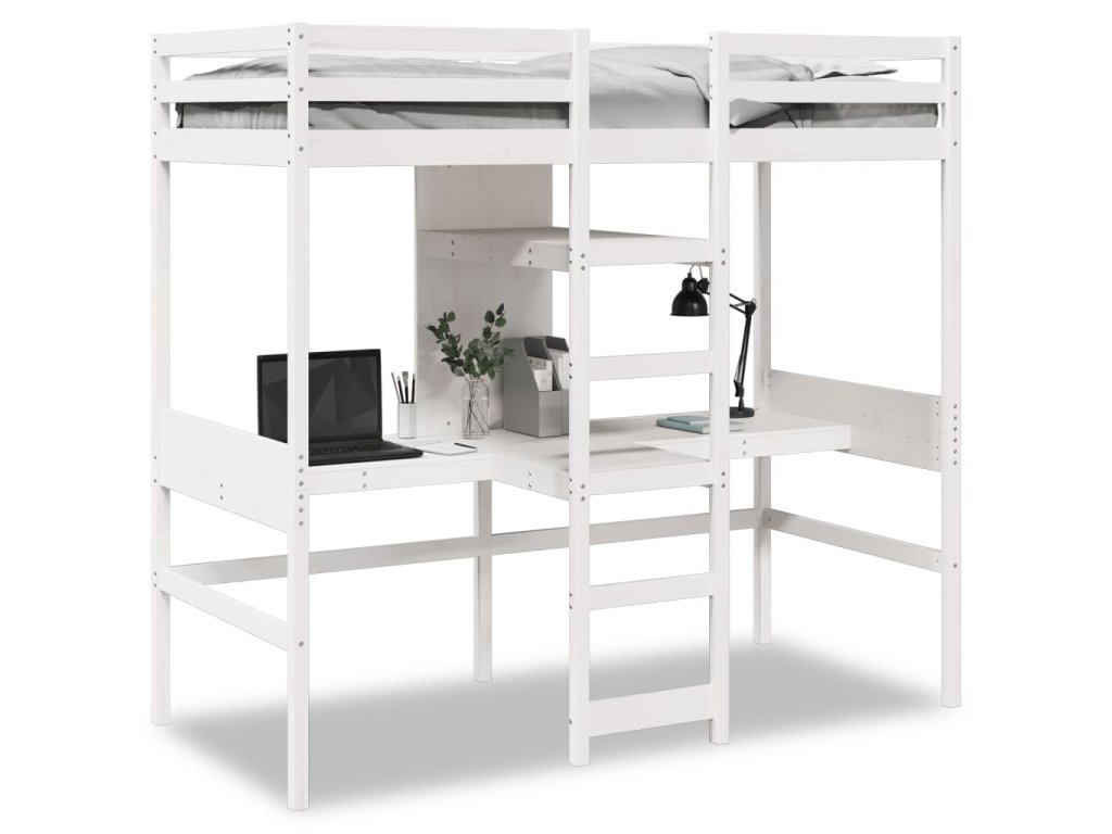 Tato všestranná patrová postel kombinuje jednolůžko s psacími stoly a policemi, takže poskytuje útulný prostor na spaní, prostornou pracovní plochu a šikovné úložné řešení. Je ideální volbou pro domácnosti s omezeným prostorem.