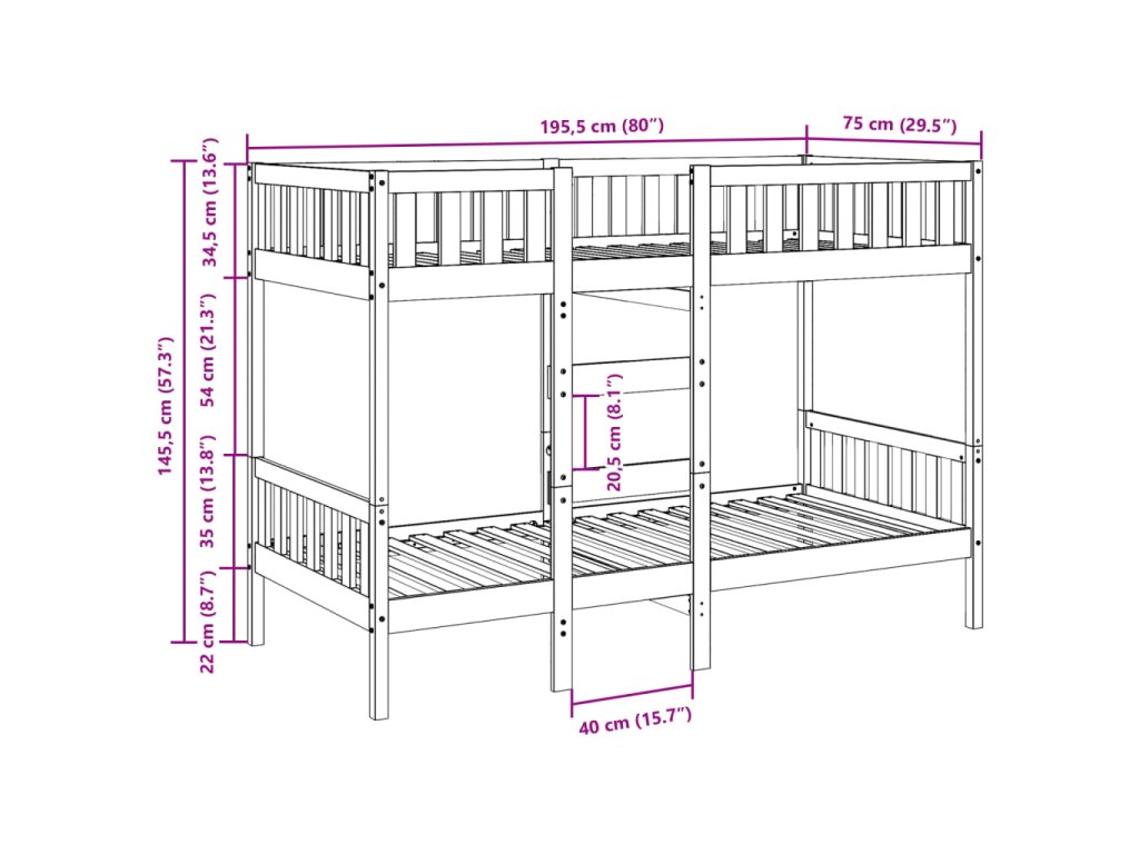 Tento rám patrové postele je prostorově úsporné řešení se dvěma lůžky v jednom, takže je ideální pro ubytování hostů, přespávání a rodiny s více dětmi.