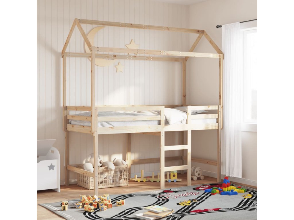 Patrová postel s žebříkem a střechou 90 x 190 cm borovice 3282148
