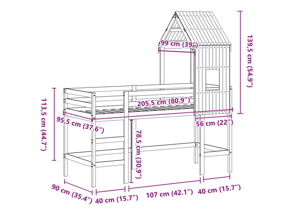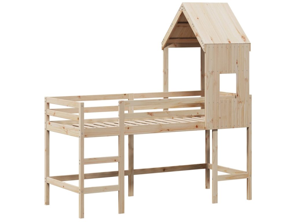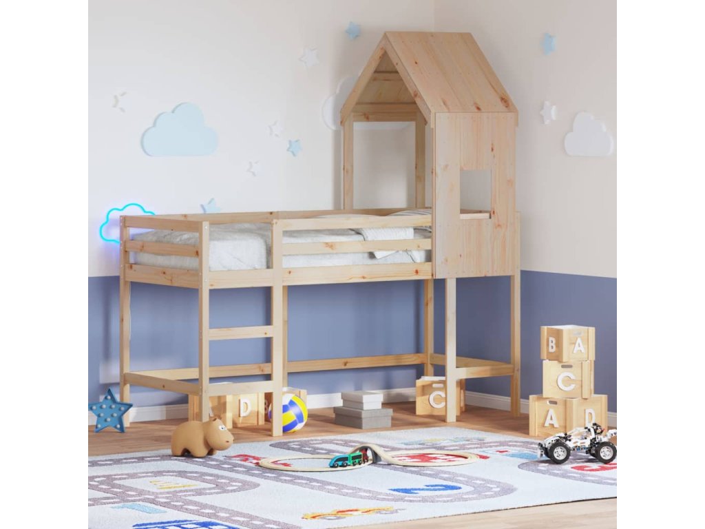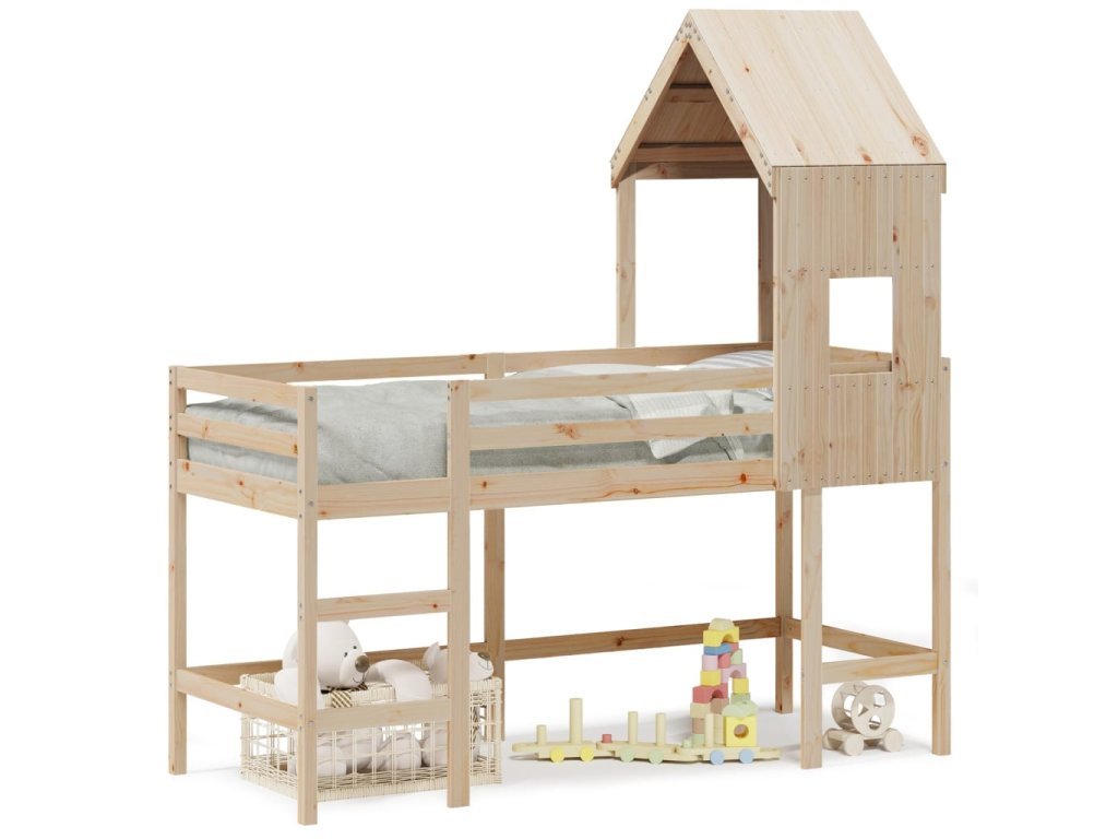 Patrová postel s žebříkem a střechou 90 x 200 cm borovice 3282030
