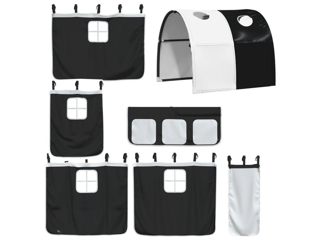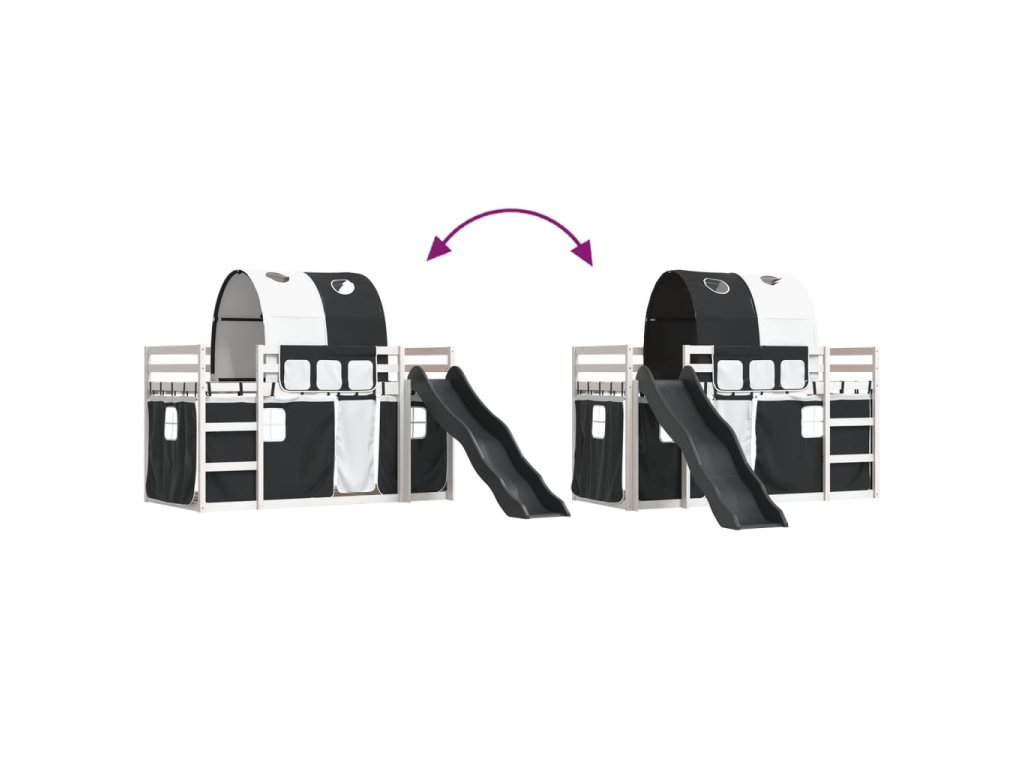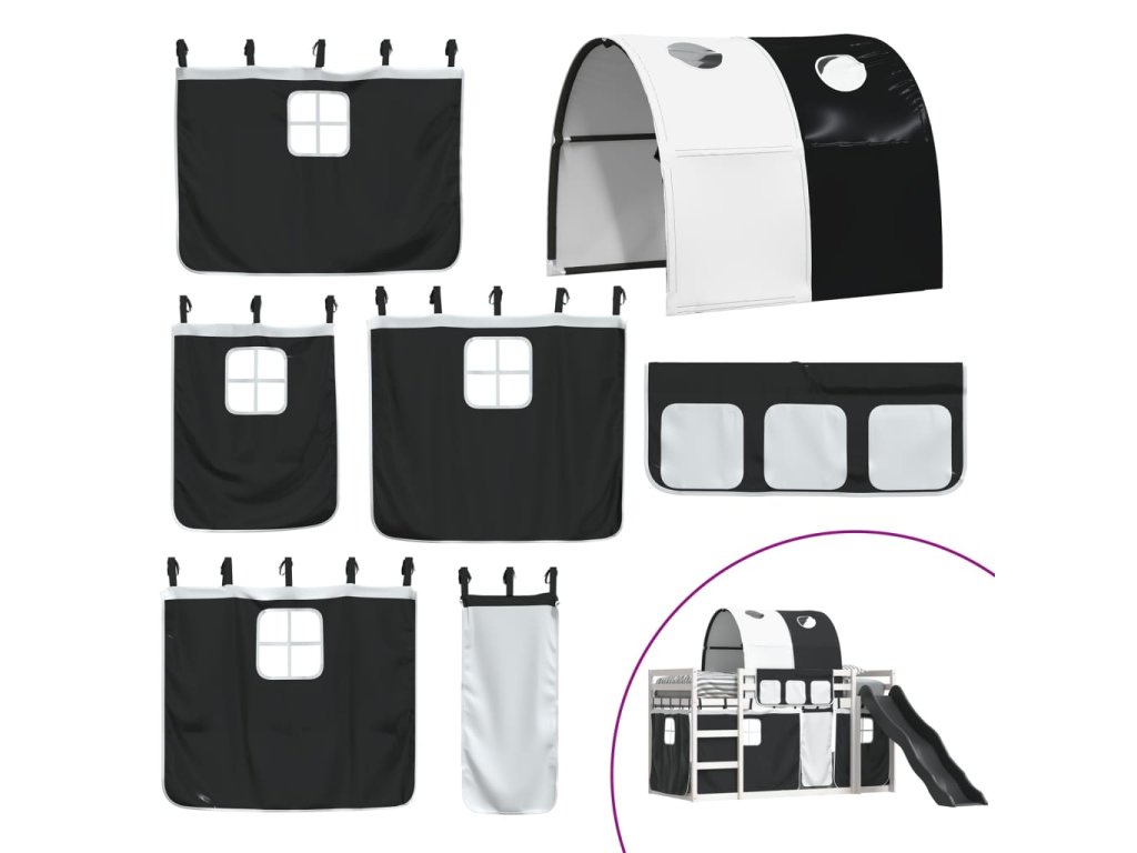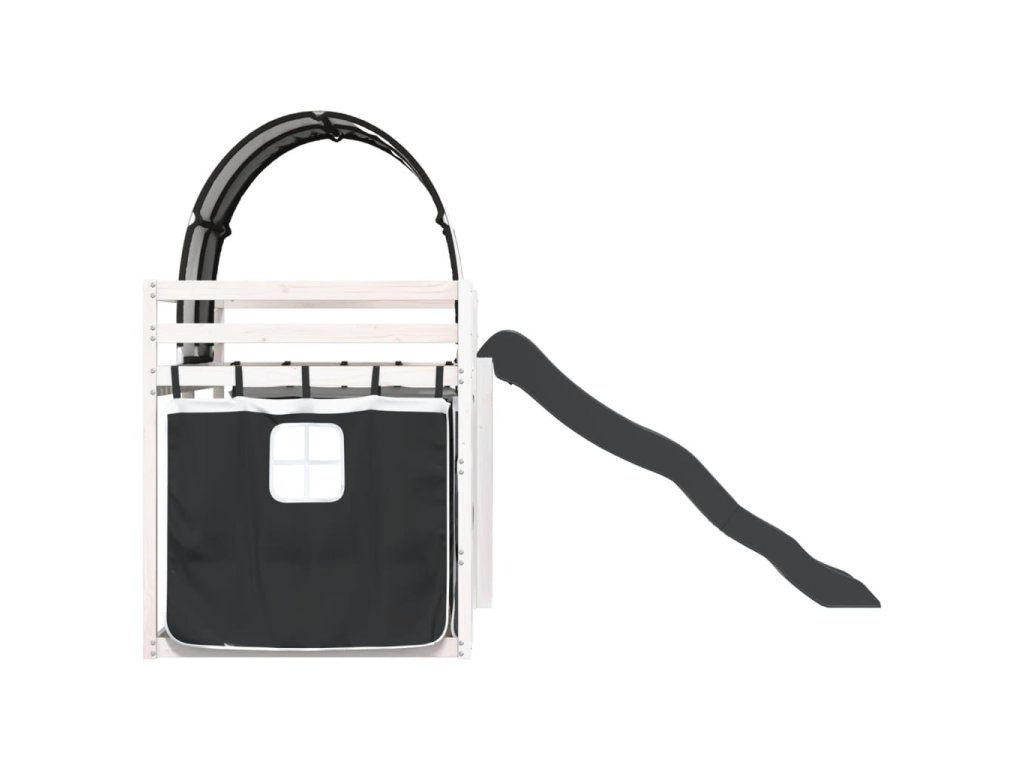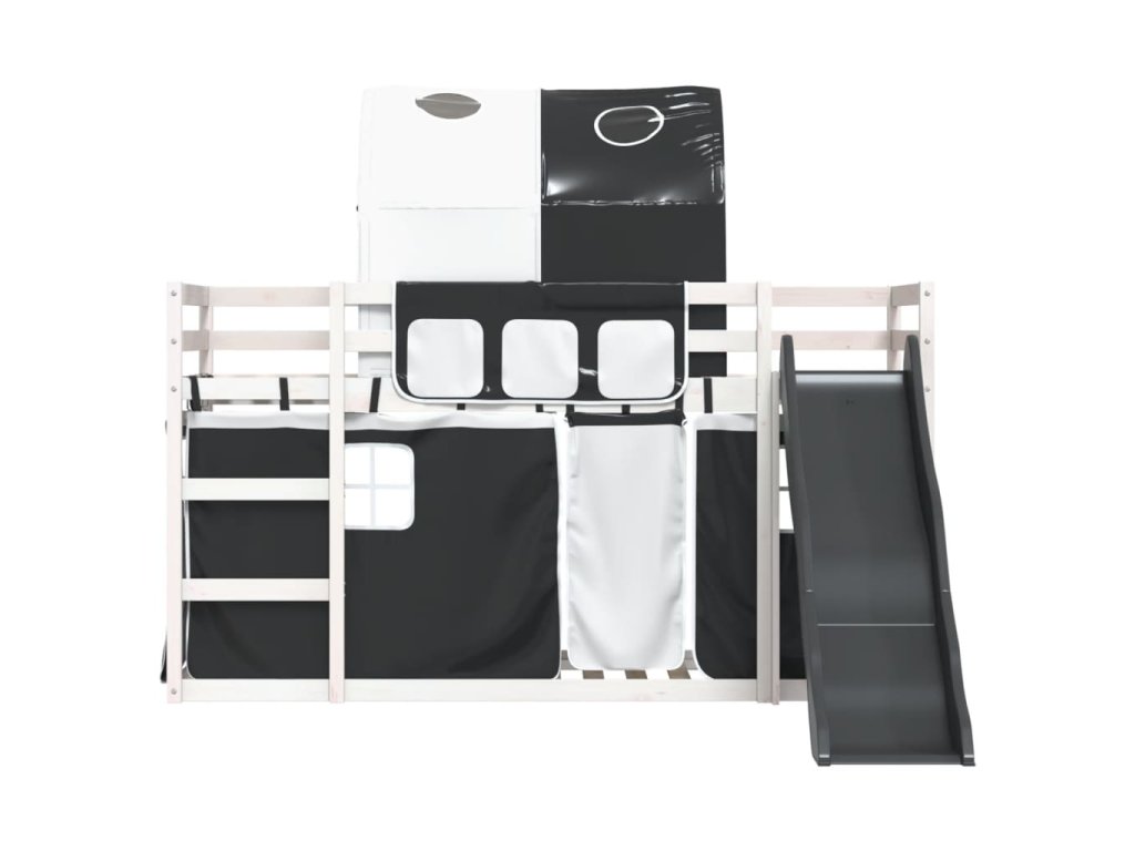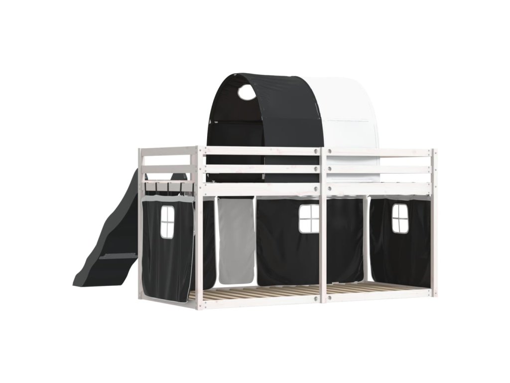 Patrová postel se skluzavkou a závěsy bílá a černá 80 x 200 cm 3284146