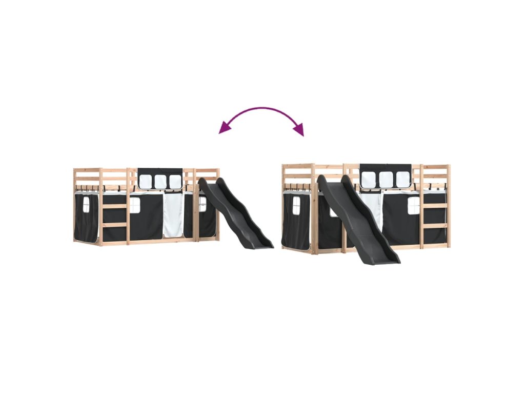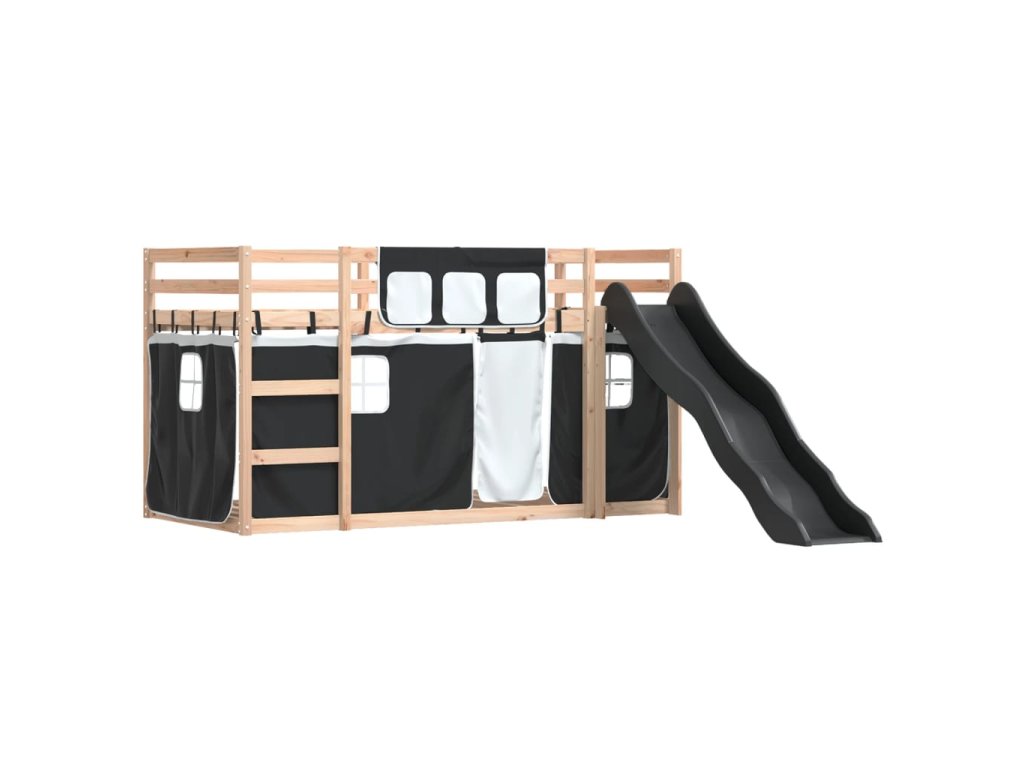 Patrová postel se skluzavkou a závěsy bílá a černá 90 x 190 cm 3284125
