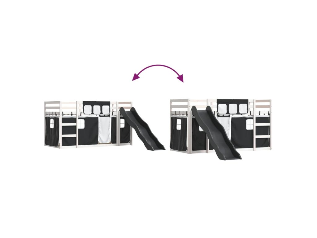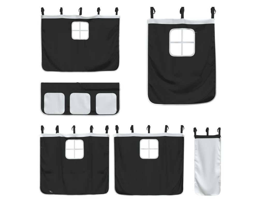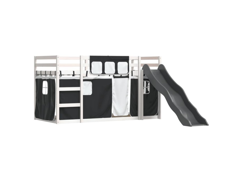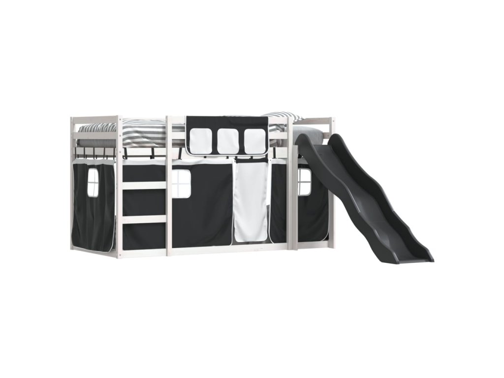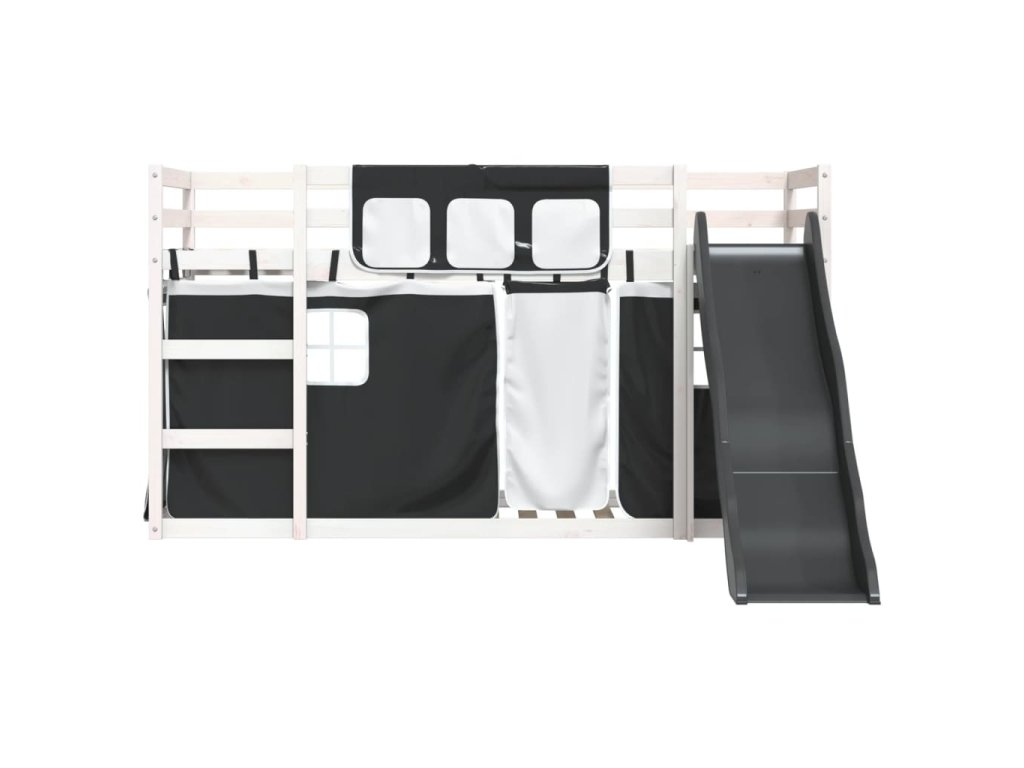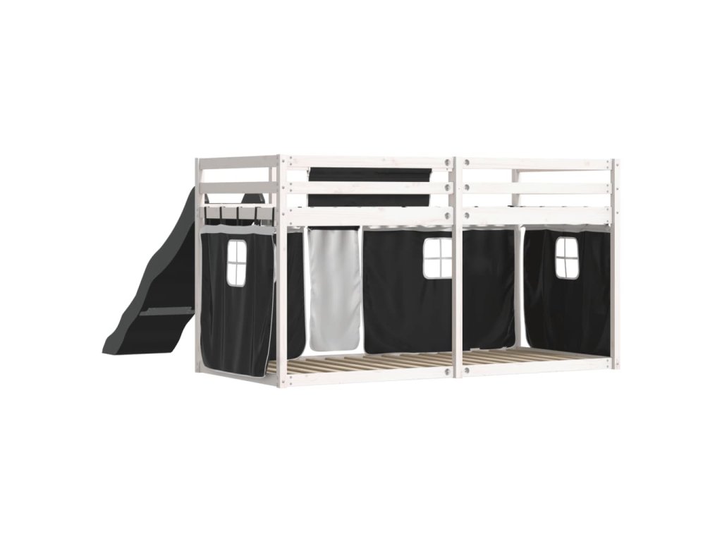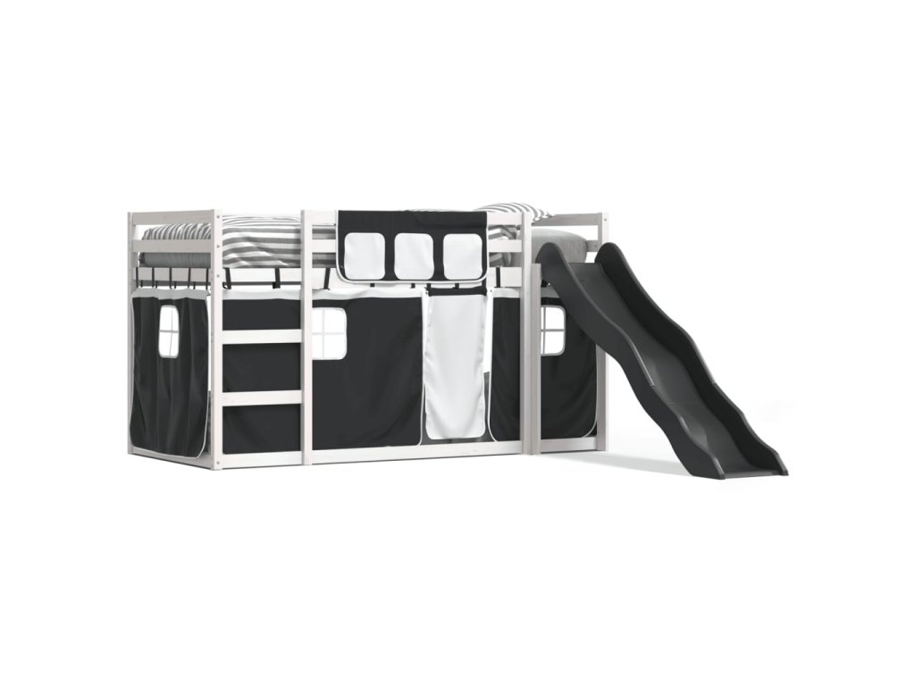 Patrová postel se skluzavkou a závěsy bílá a černá 90 x 200 cm 3284110