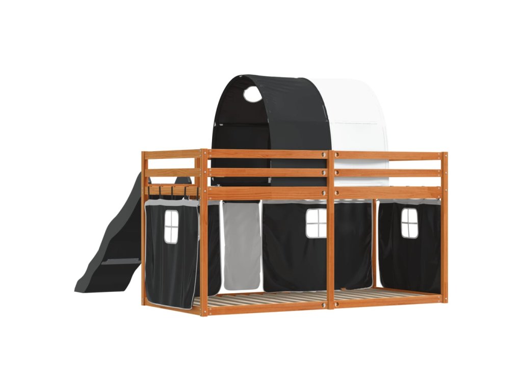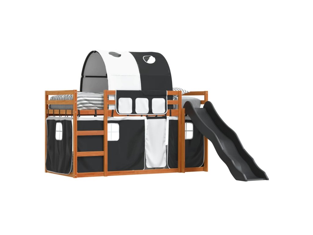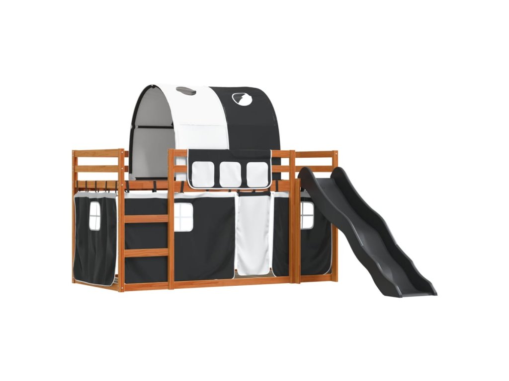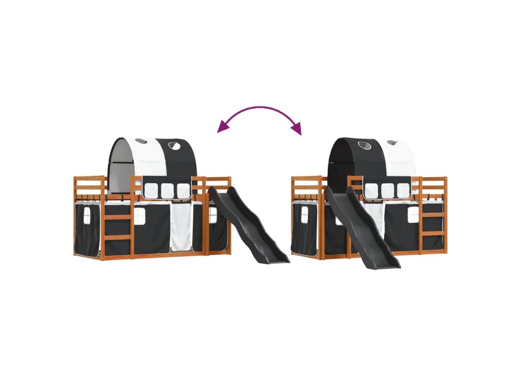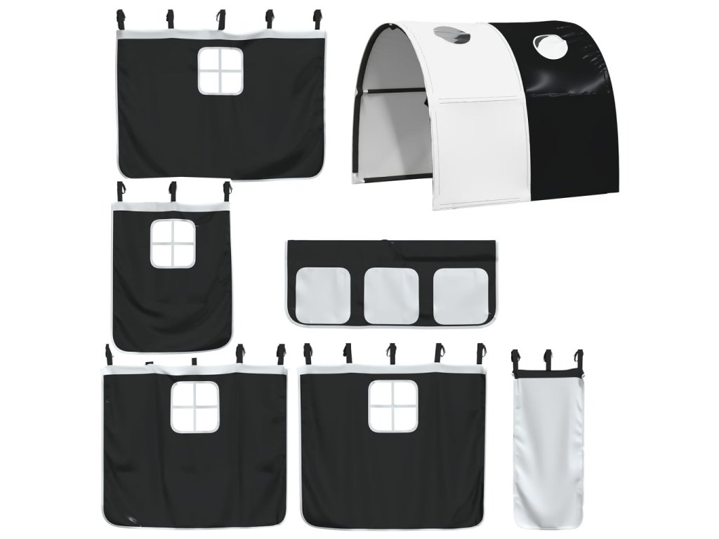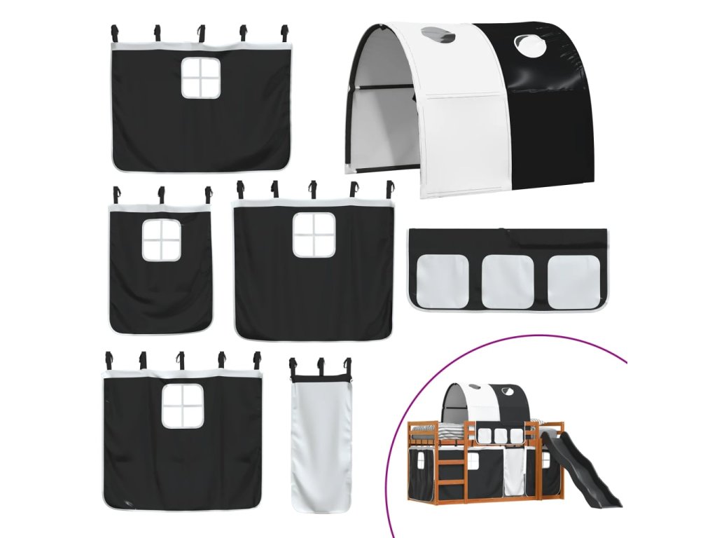 Patrová postel se skluzavkou a závěsy bílá a černá 90 x 200 cm 3284140