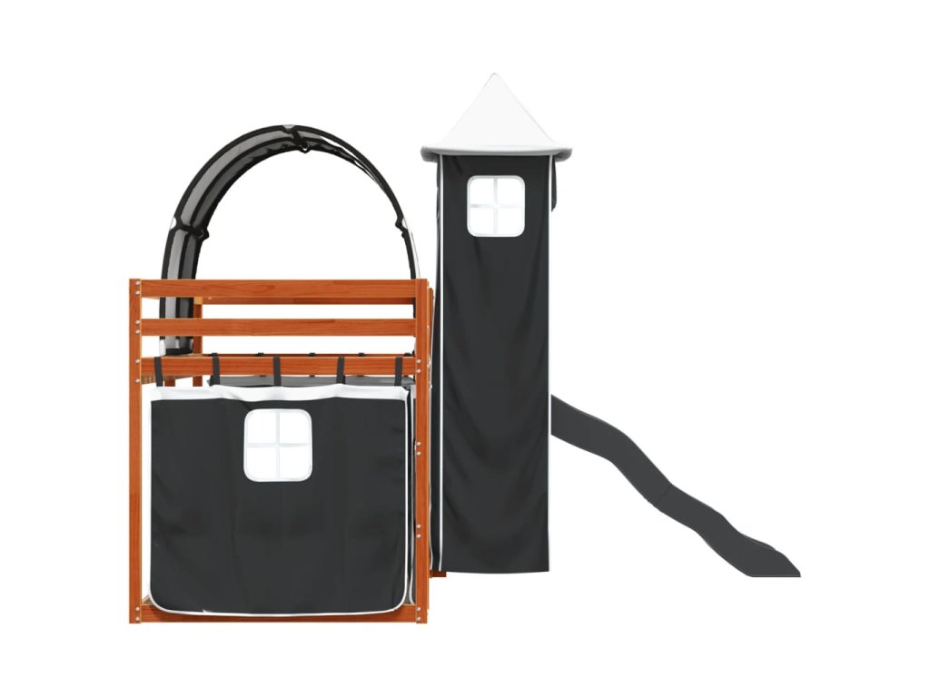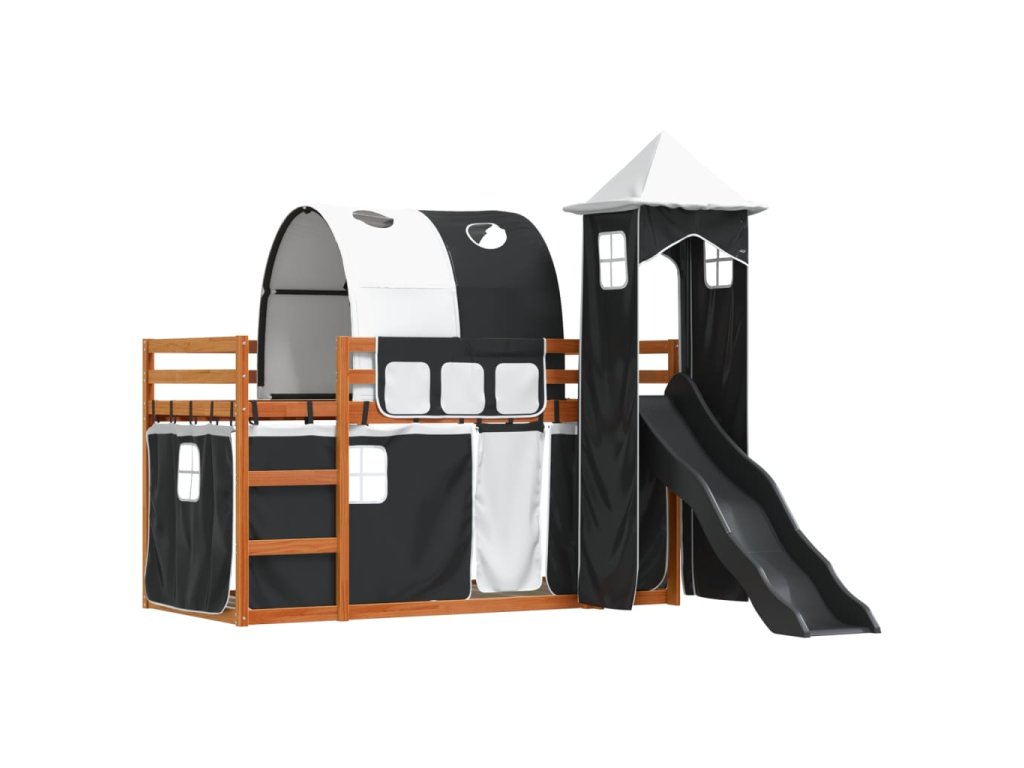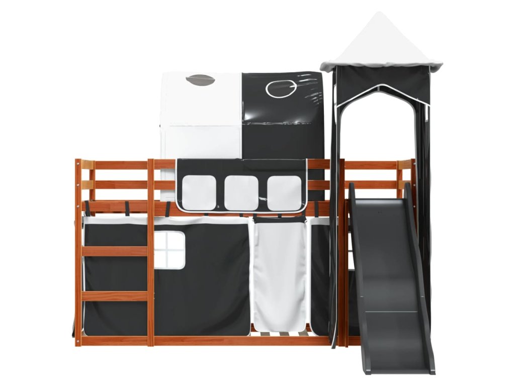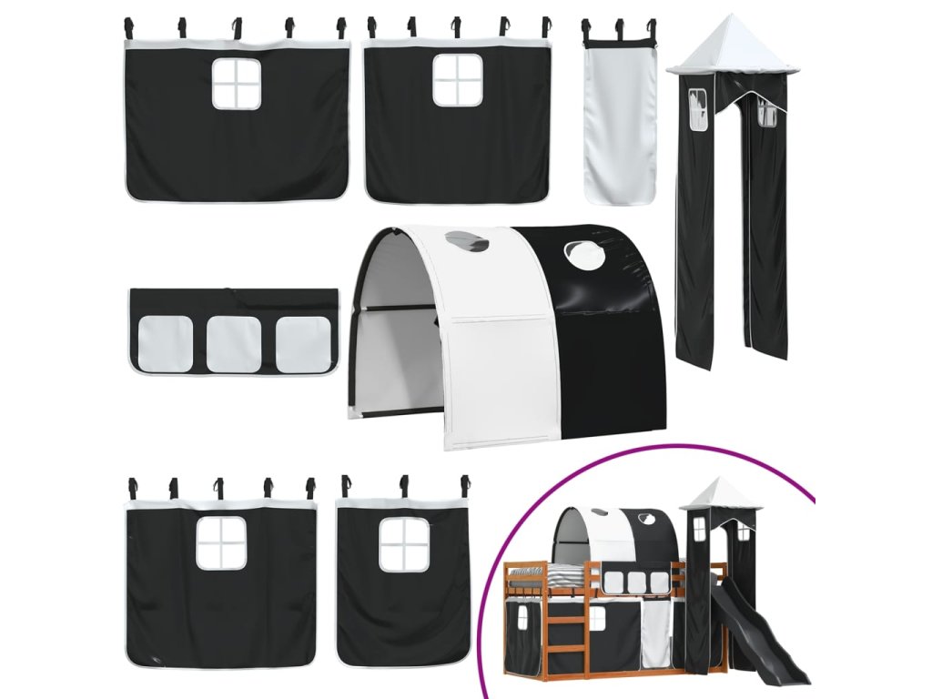Patrová postel se skluzavkou a závěsy bílá a černá 90 x 200 cm 3284167