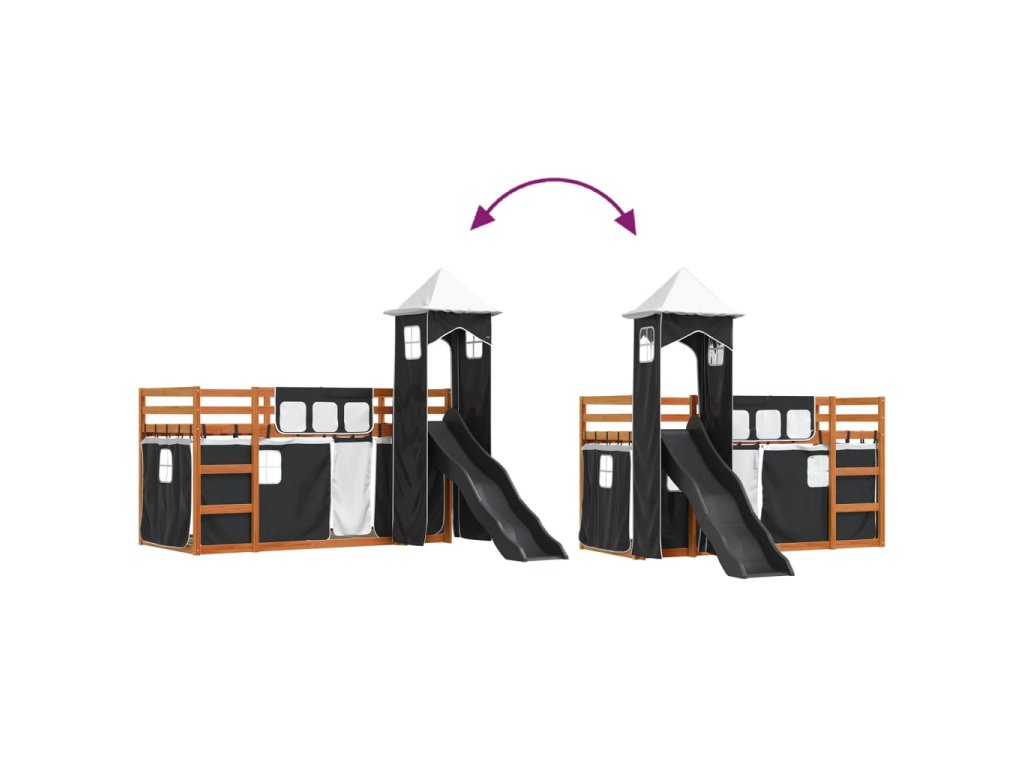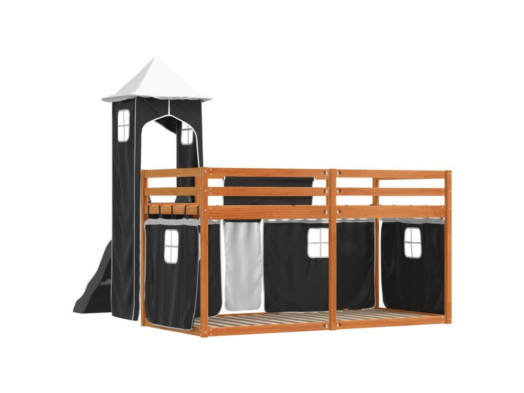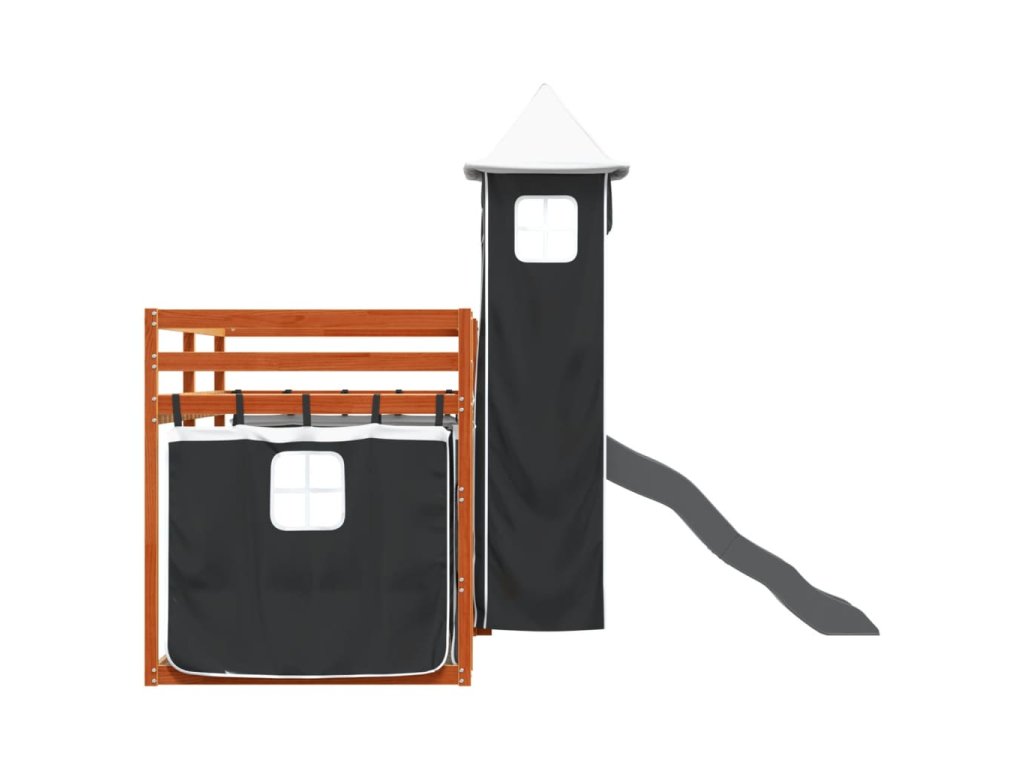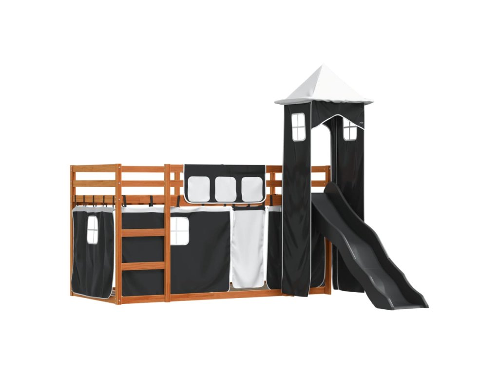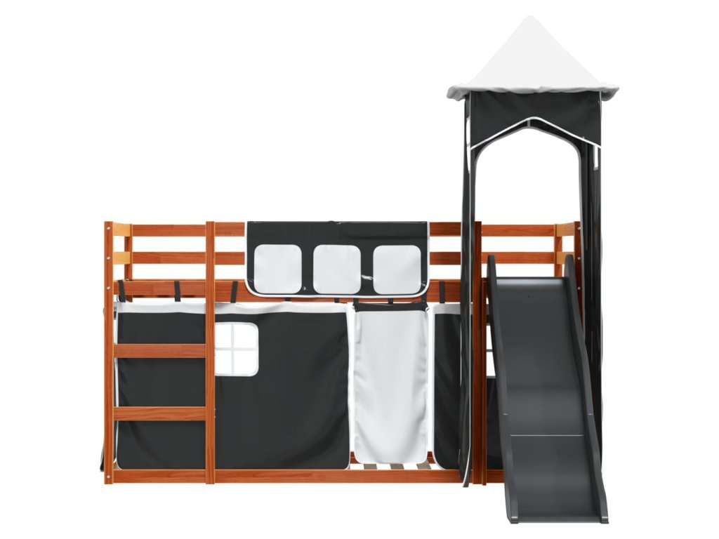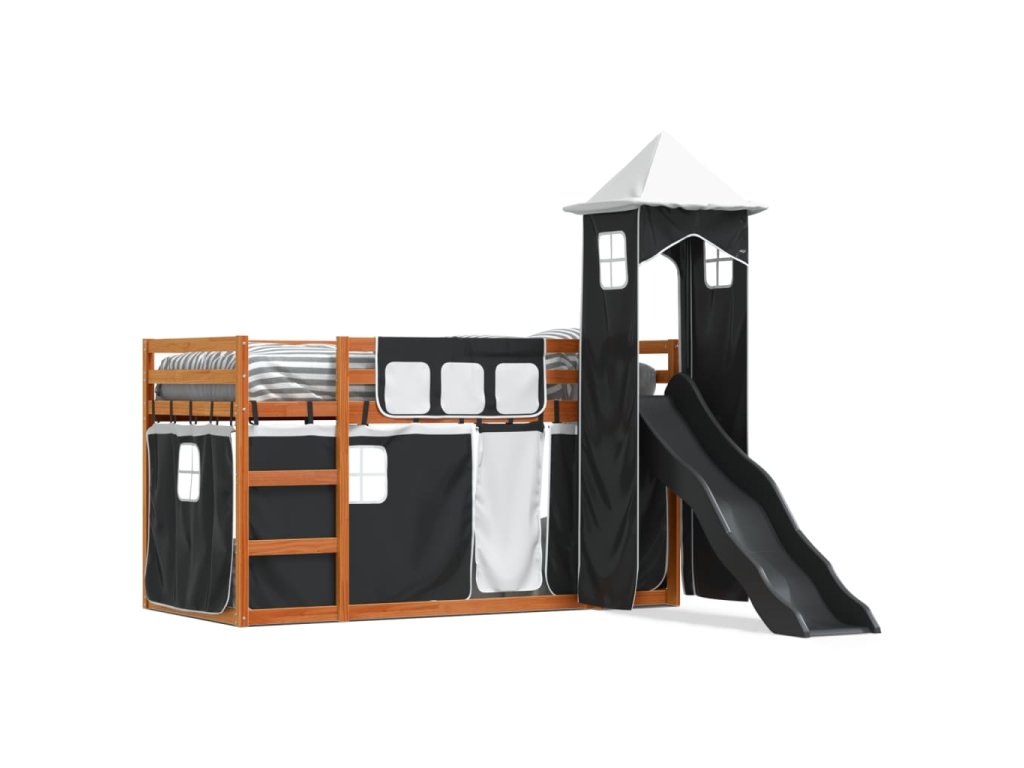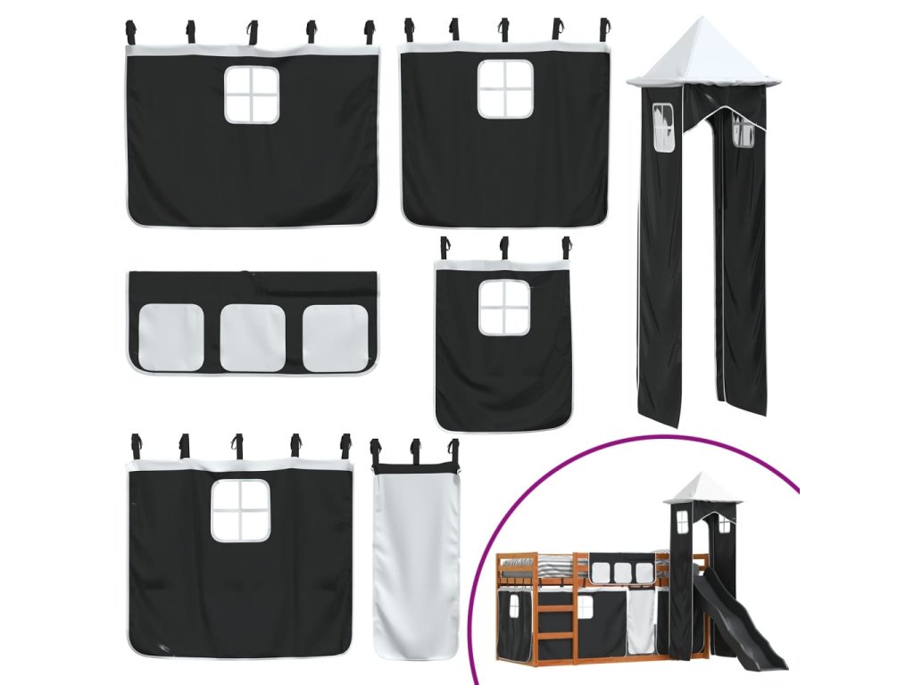 Patrová postel se skluzavkou a závěsy bílá a černá 90 x 200 cm 3284194