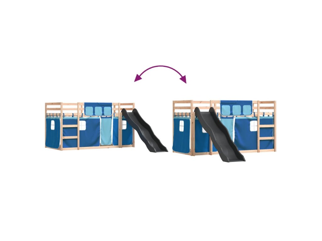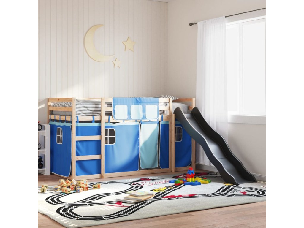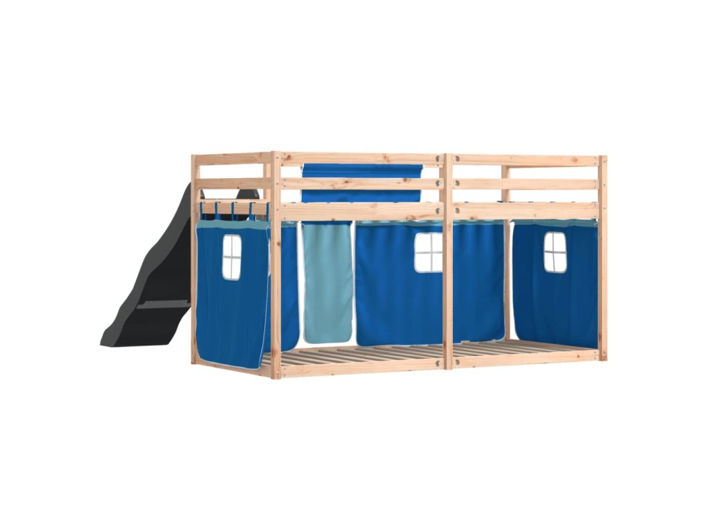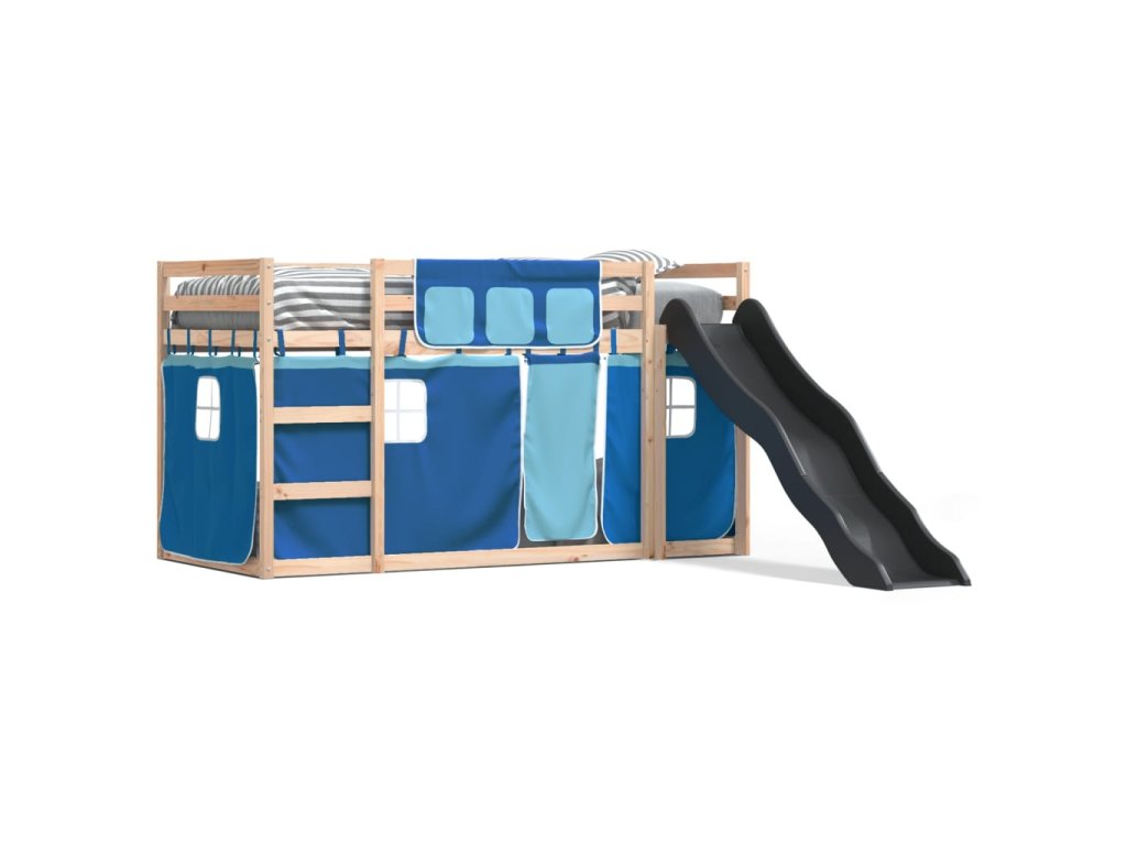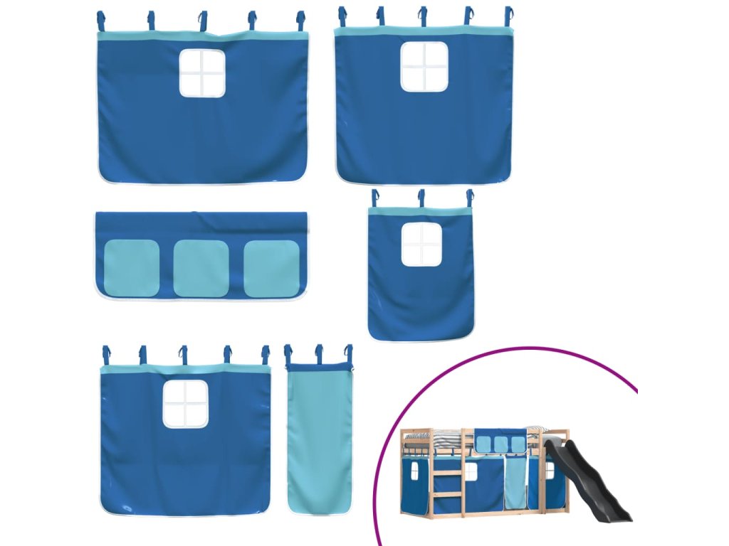 Patrová postel se skluzavkou a závěsy modrá 90 x 190 cm 3284126