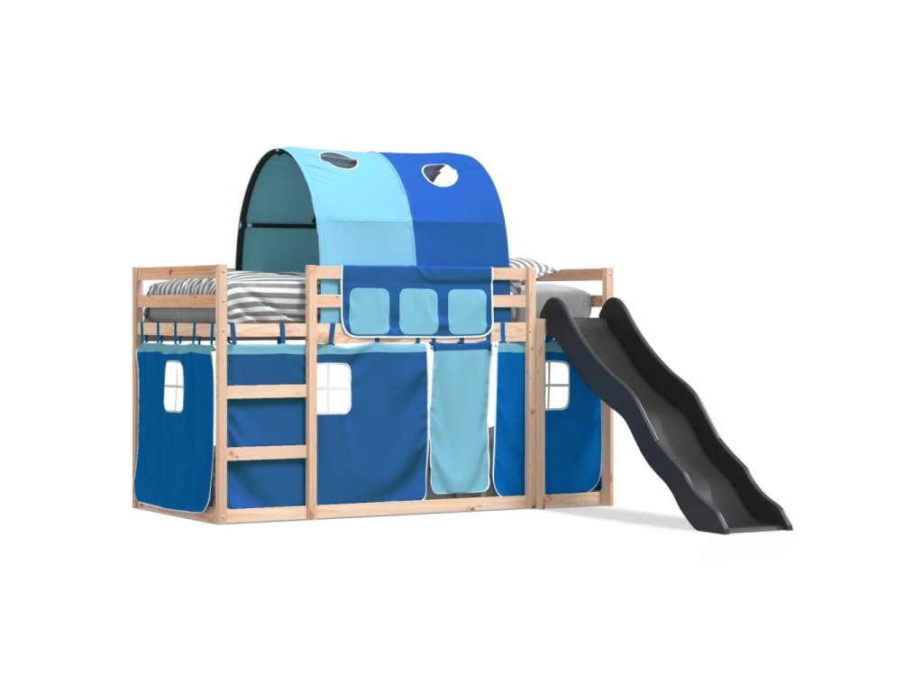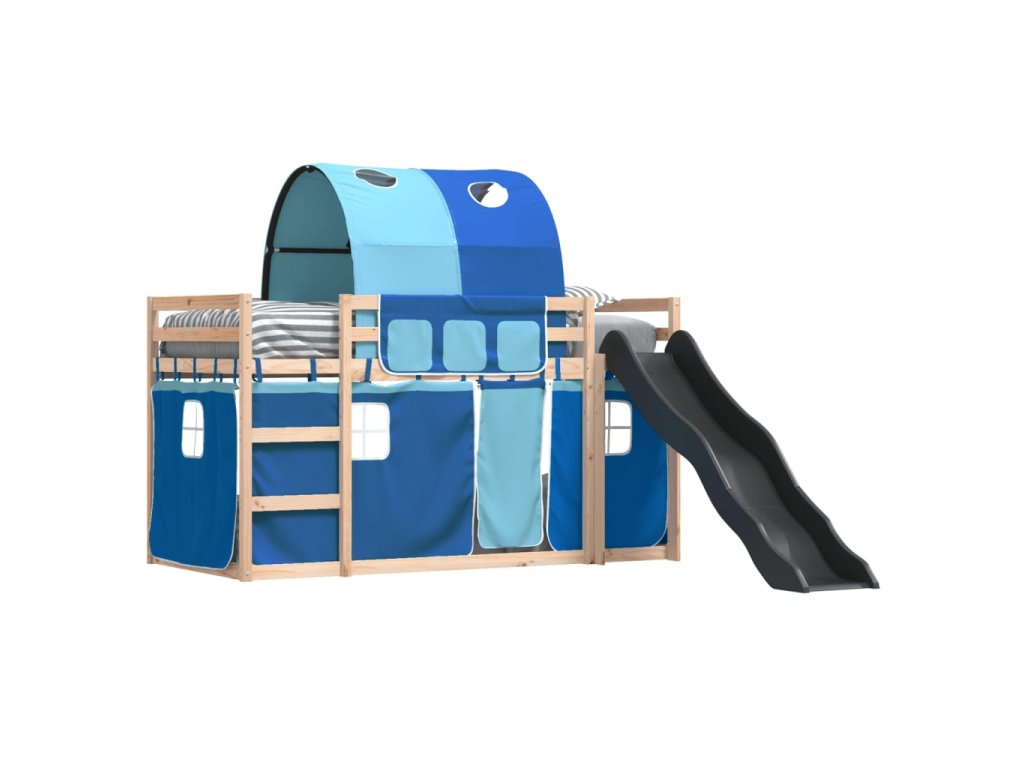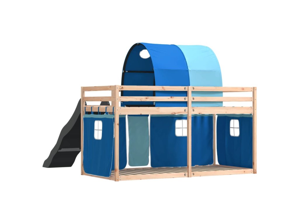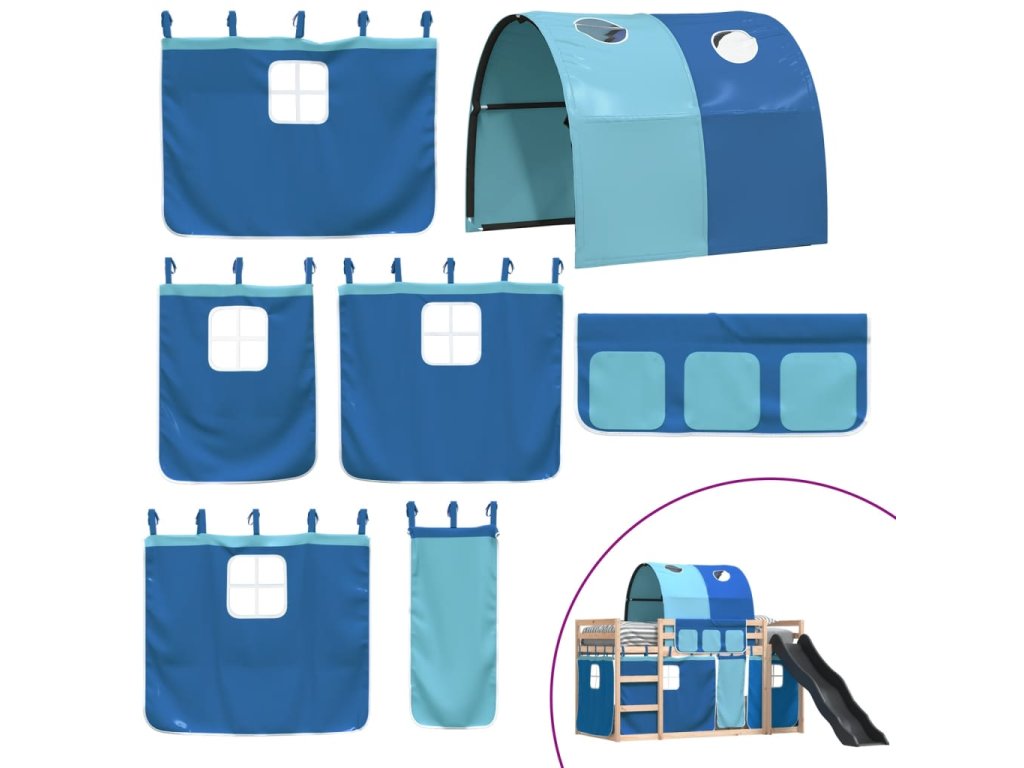 Patrová postel se skluzavkou a závěsy modrá 90 x 190 cm 3284153