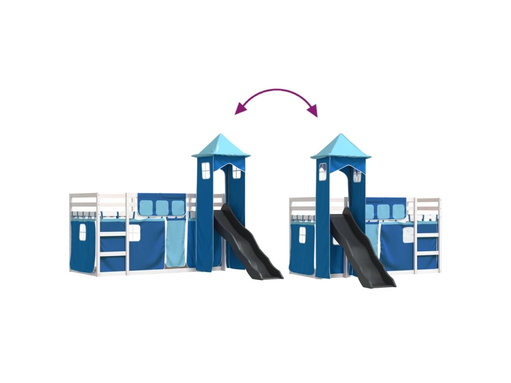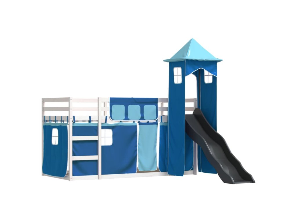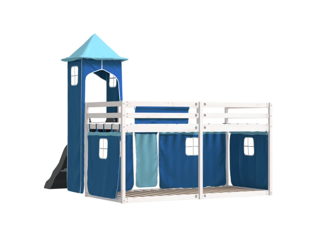 Patrová postel se skluzavkou a závěsy modrá 90 x 190 cm 3284210