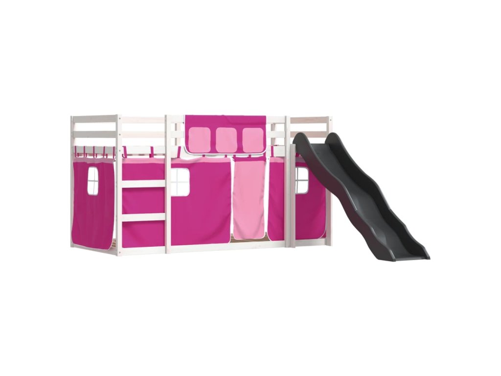 Patrová postel se skluzavkou a závěsy růžová 90 x 190 cm 3284130