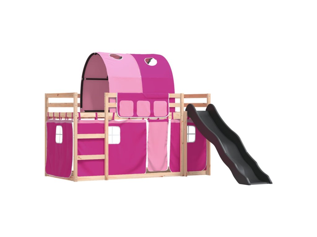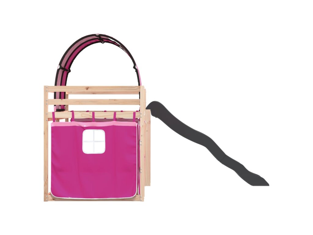 Patrová postel se skluzavkou a závěsy růžová 90 x 190 cm 3284154
