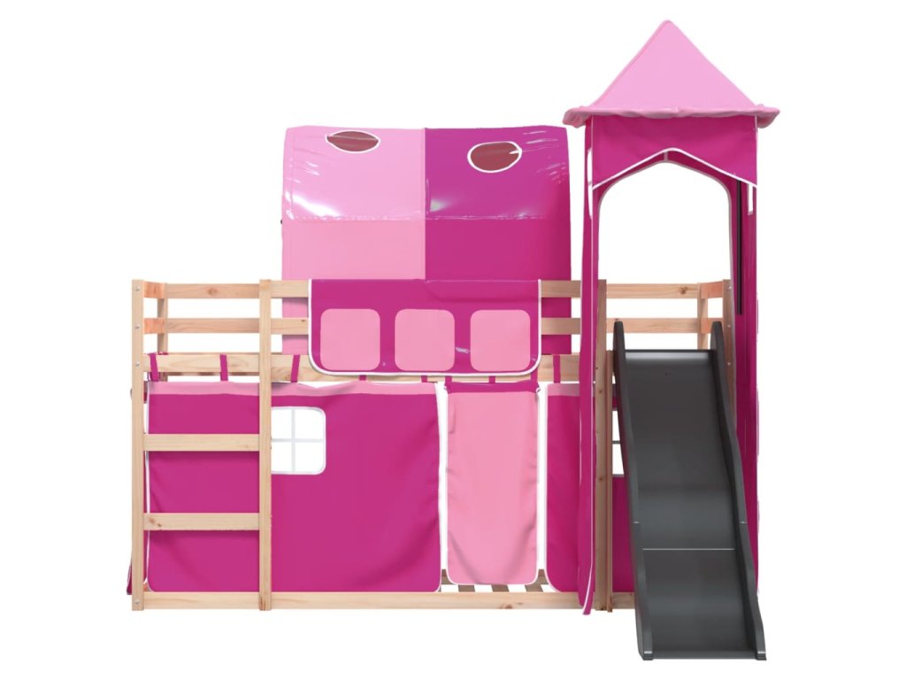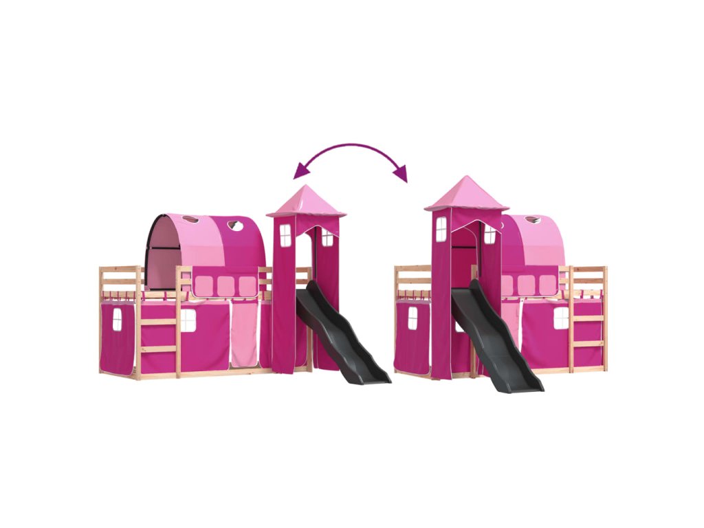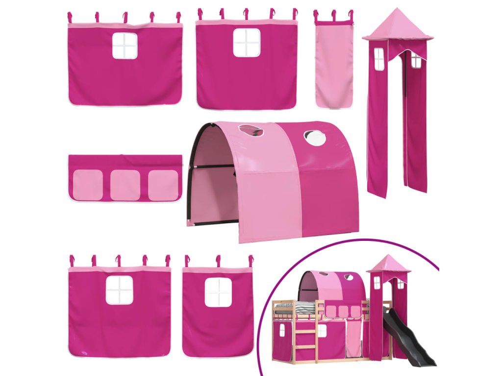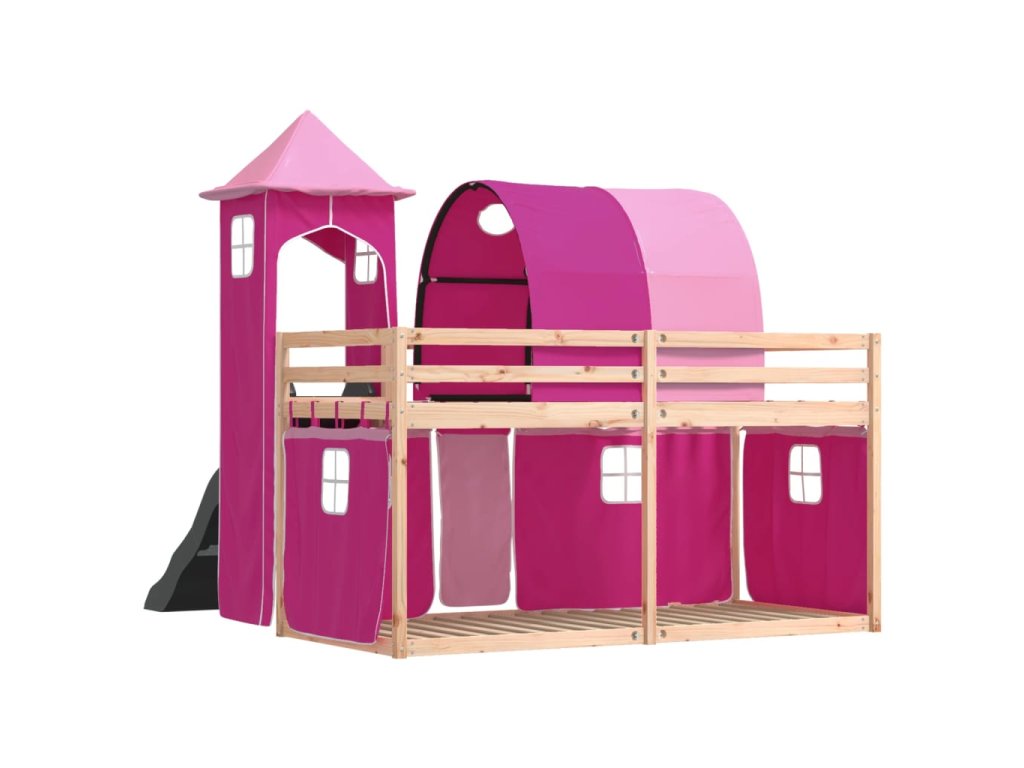 Patrová postel se skluzavkou a závěsy růžová 90 x 200 cm 3284163