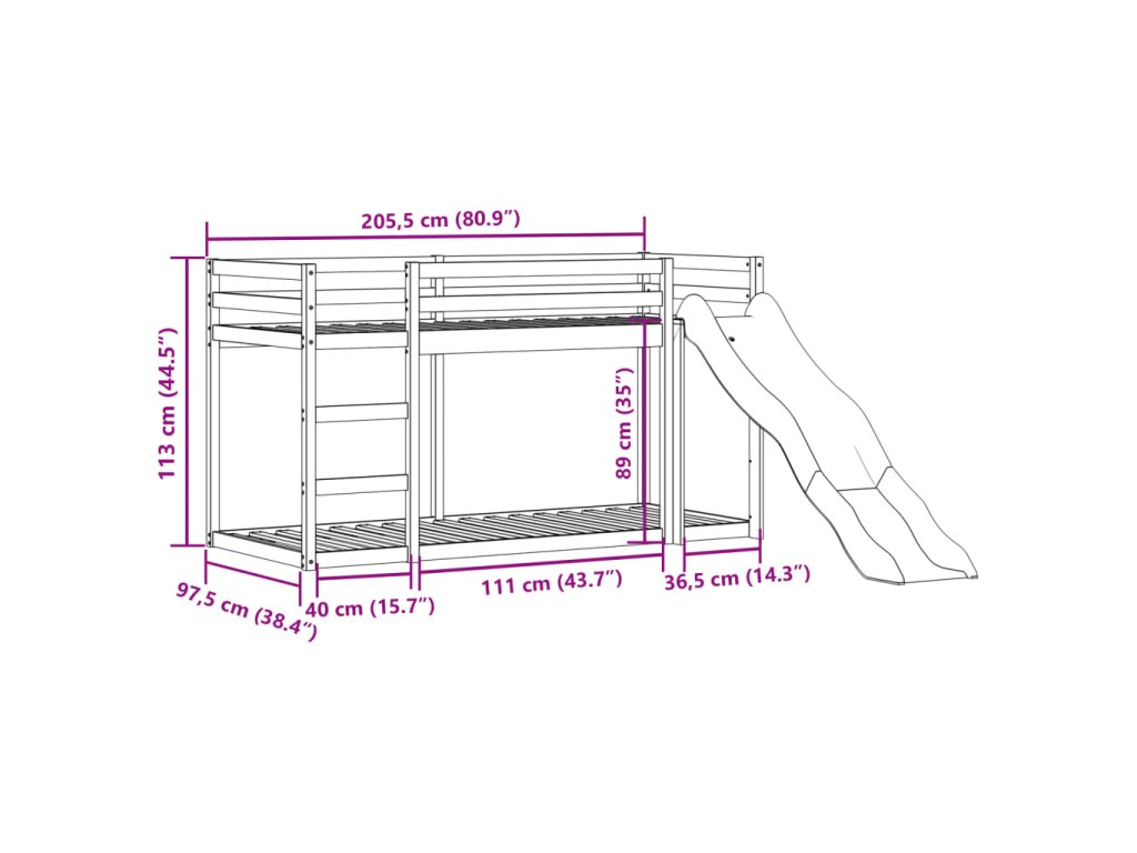 Patrová postel se skluzavkou a žebříkem 90 x 200 cm borovice 3284242