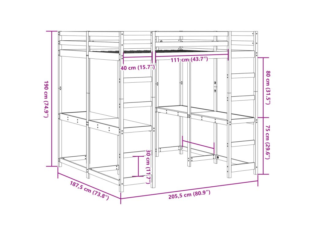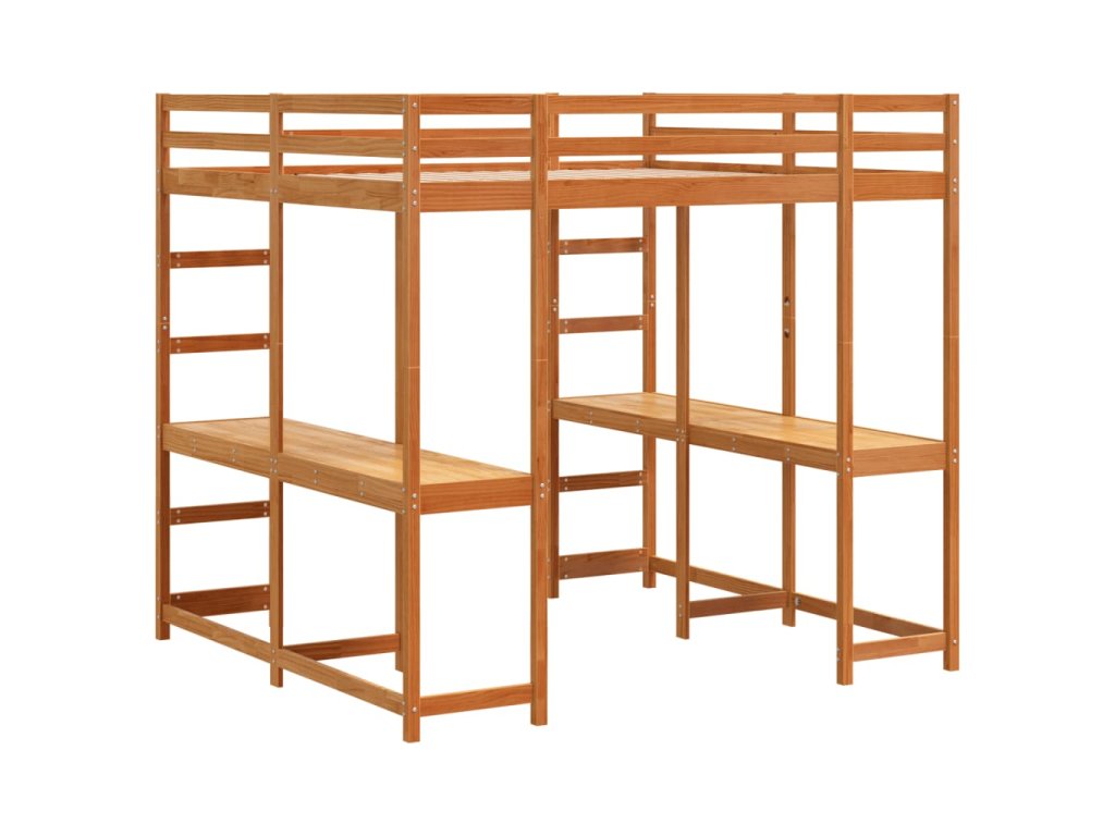 Patrová postel se stolem a žebříkem hnědá 180 x 200 cm borovice 3284232