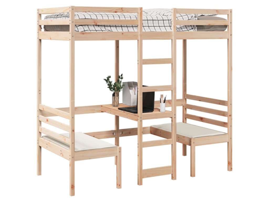 Tato všestranná patrová postel kombinuje jednolůžko s psacím stolem a židlemi, takže poskytuje útulný prostor na spaní a prostornou pracovní plochu. Je ideální volbou pro domácnosti s omezeným prostorem.