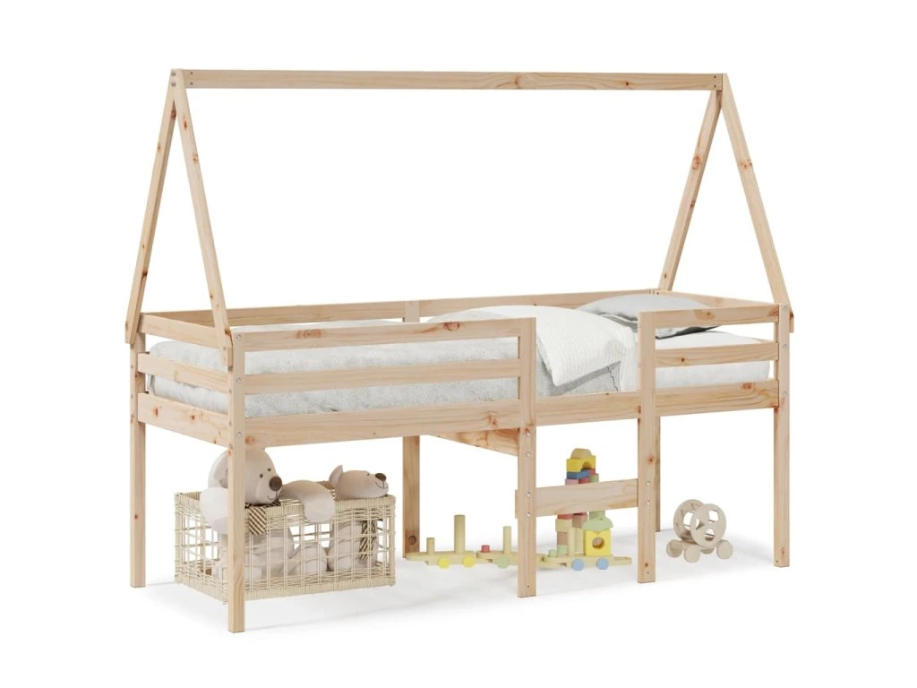 Patrová postel se střechou 80 x 200 cm masivní borové dřevo 3282095