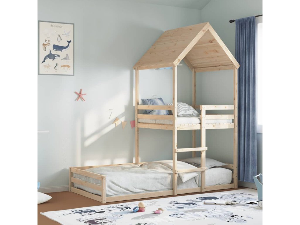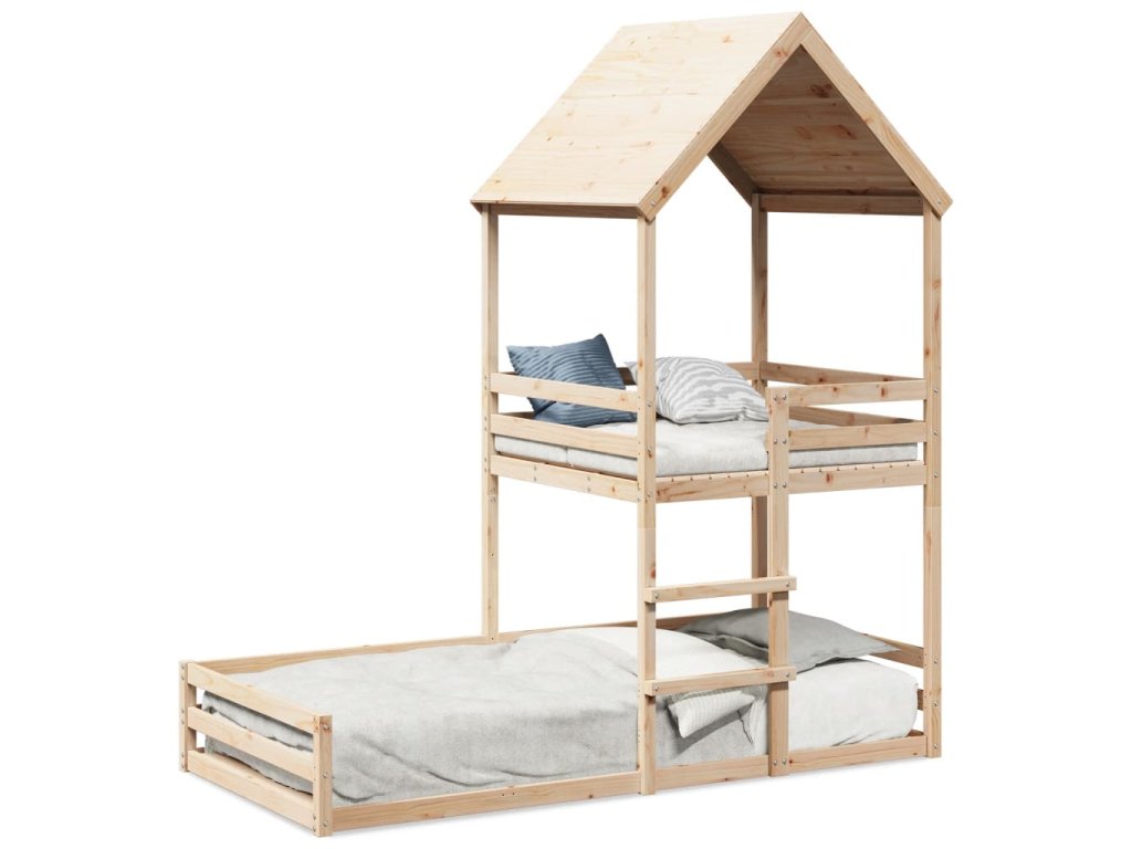 Patrová postel se střechou 80 x 200 cm masivní borové dřevo 3282393