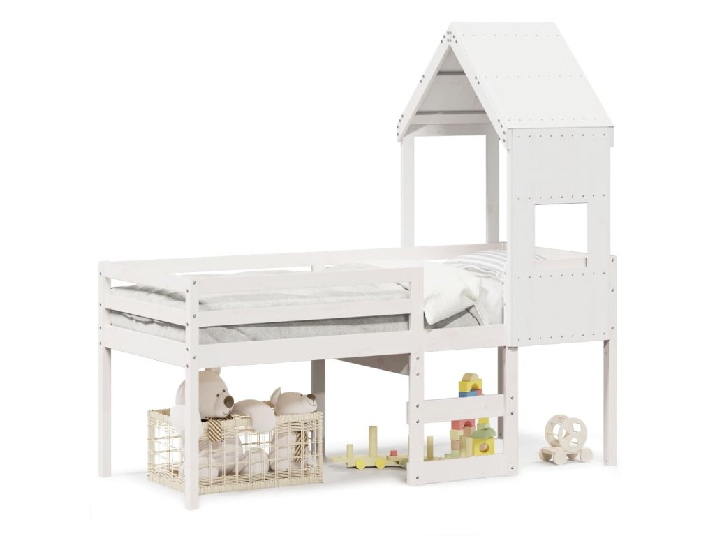 Patrová postel se střechou bílá 75 x 190 cm masivní borovice 3282020