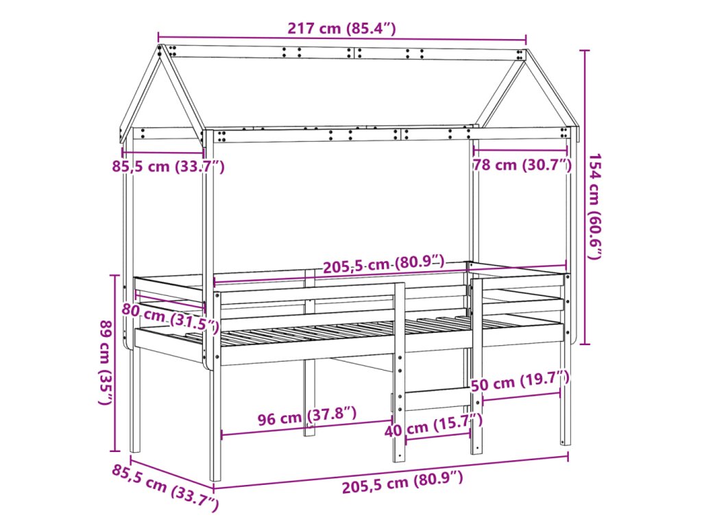 Patrová postel se střechou bílá 80 x 200 cm masivní borovice 3282136
