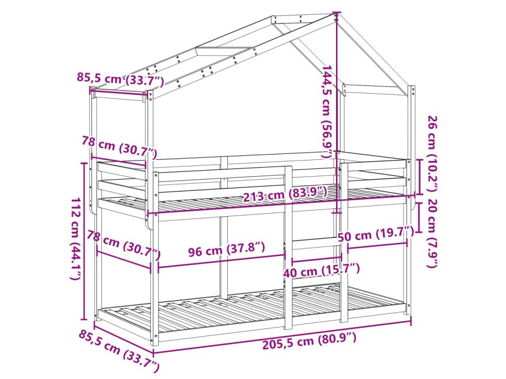 Patrová postel se střechou bílá 80x200 cm masivní borové dřevo 3282042
