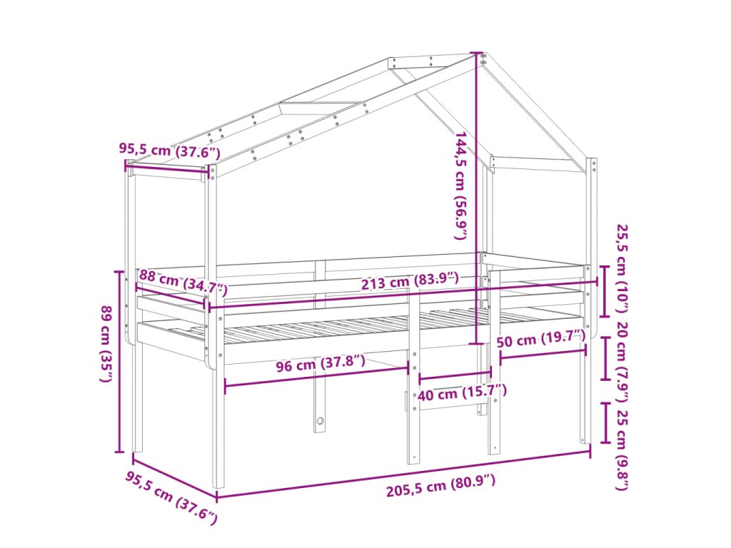 - Bezpečný design: Zabudovaný žebřík usnadňuje vylézání do postele a slézání z ní. Ochranná zábrana zajistí, že vaše ratolesti budou během spánku v bezpečí.