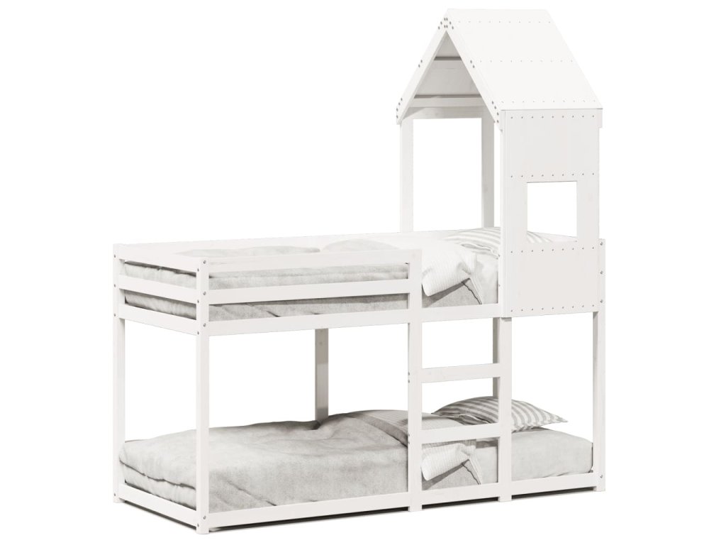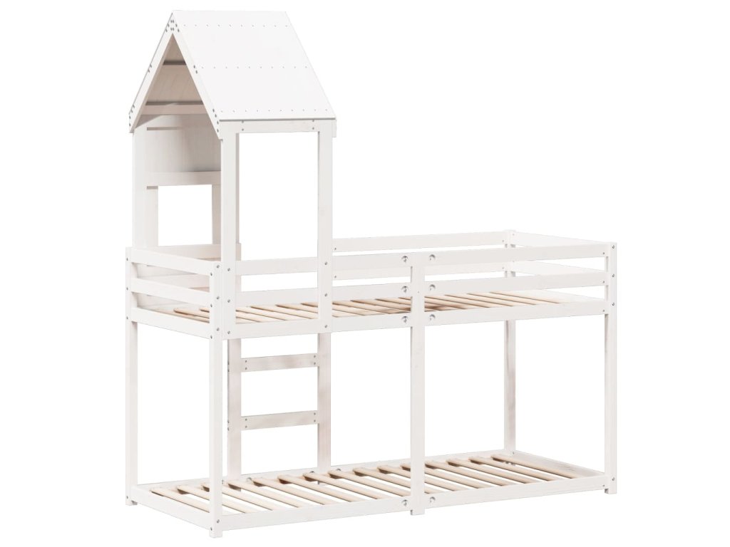 Patrová postel se střechou bílá 90x190 cm masivní borové dřevo 3282003