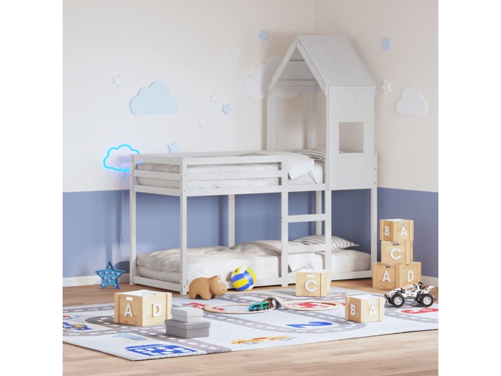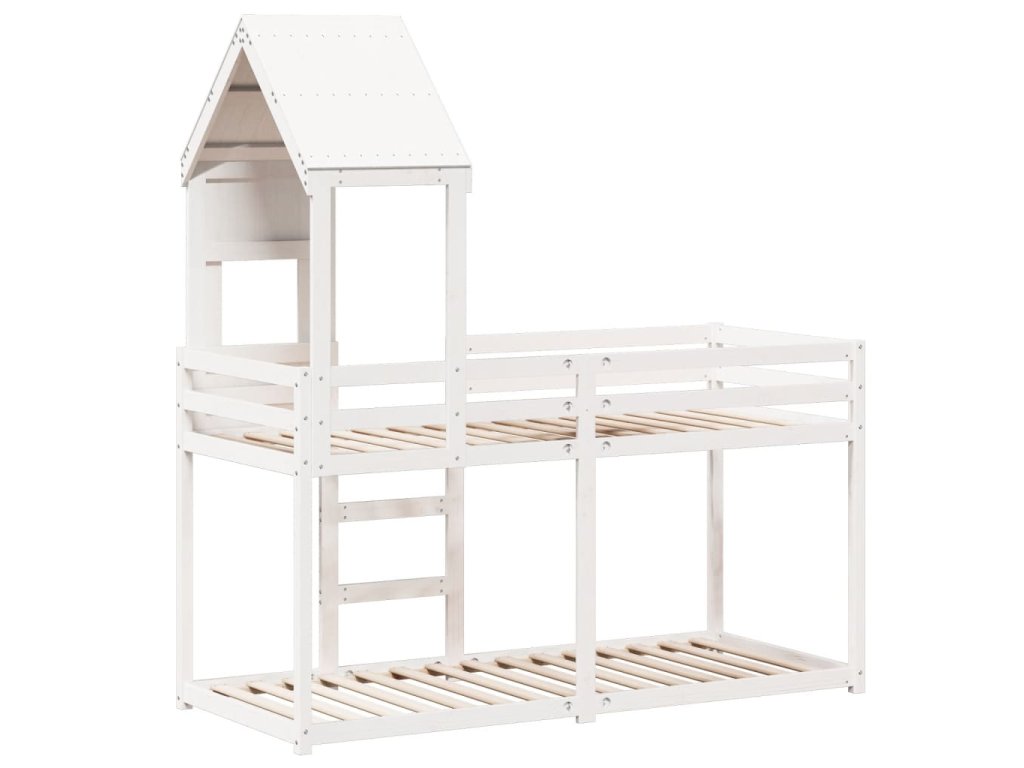 Patrová postel se střechou bílá 90x190 cm masivní borové dřevo 3282006