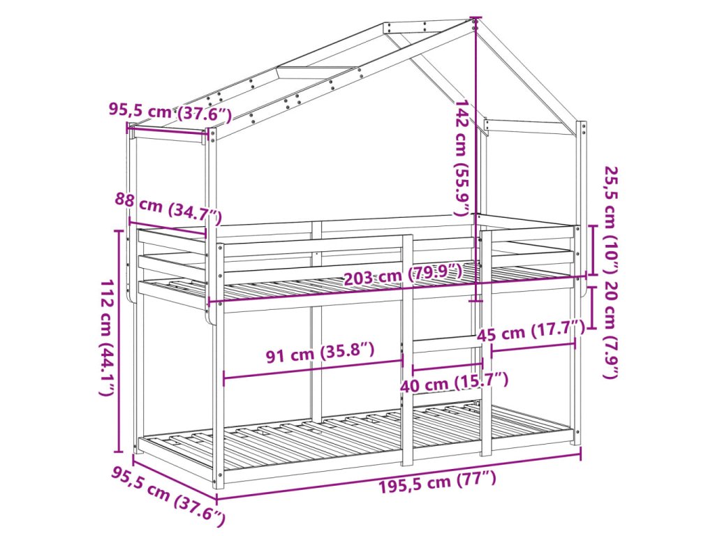 Patrová postel se střechou bílá 90x190 cm masivní borové dřevo 3282048