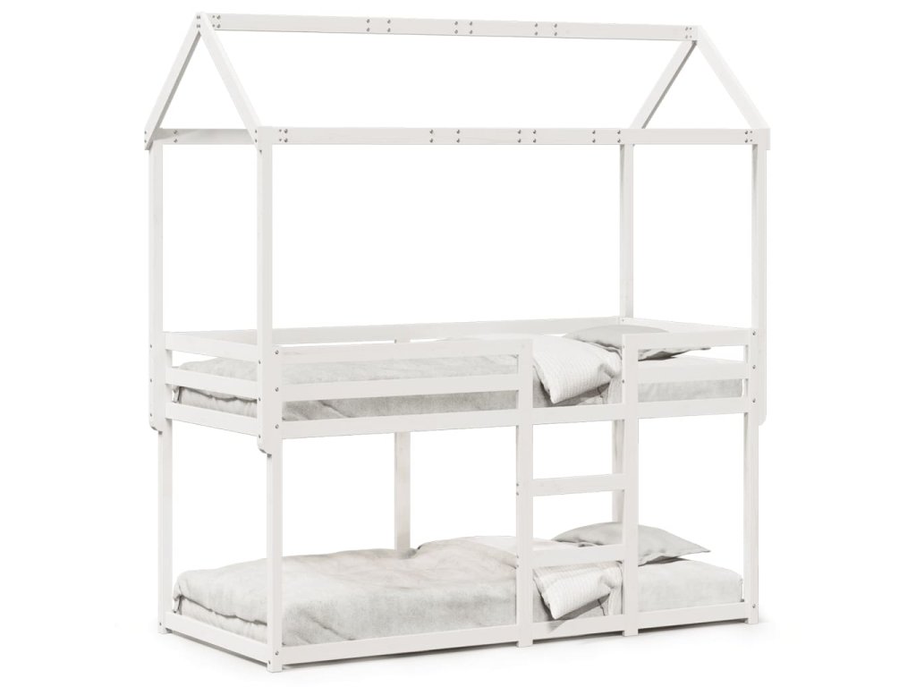 Patrová postel se střechou bílá 90x190 cm masivní borové dřevo 3282128
