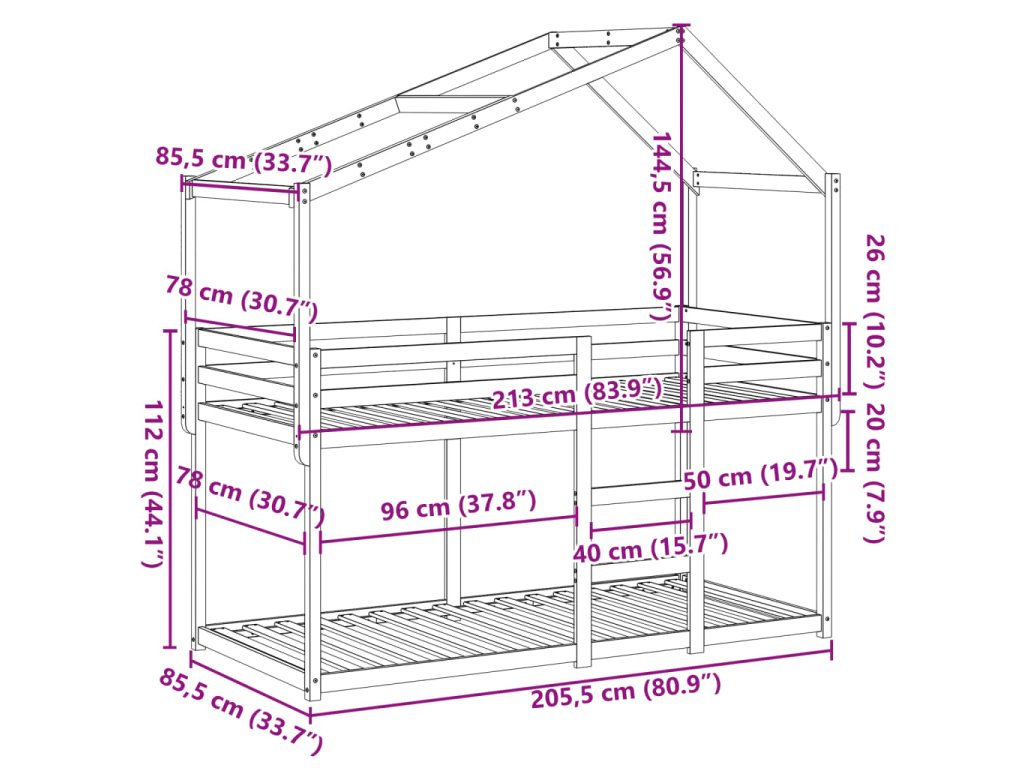 Patrová postel se střechou voskově hnědá 80x200 cm borové dřevo 3282043