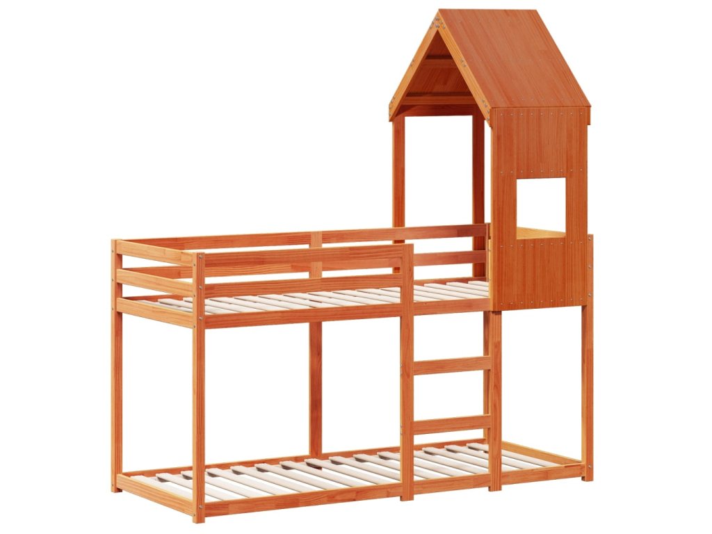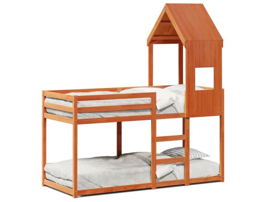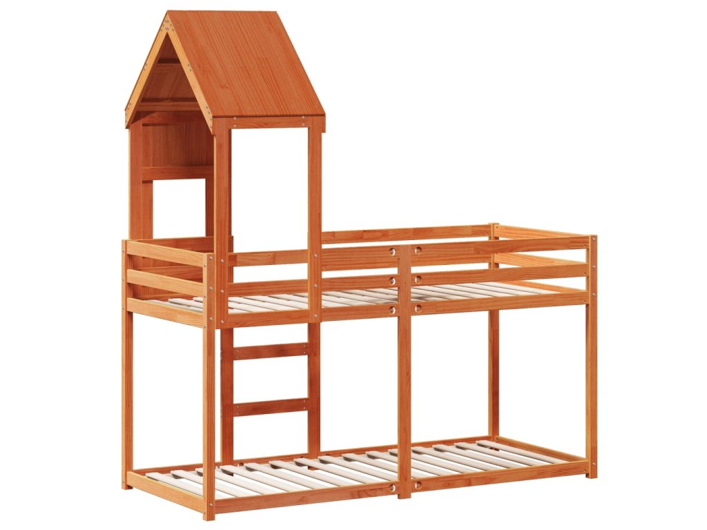 Patrová postel se střechou voskově hnědá 90x190 cm borové dřevo 3282004